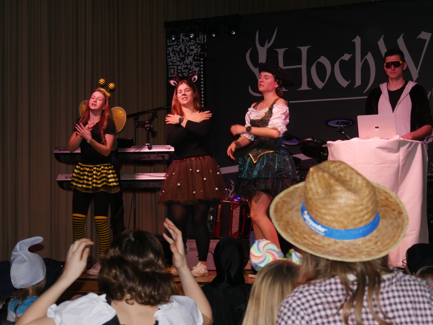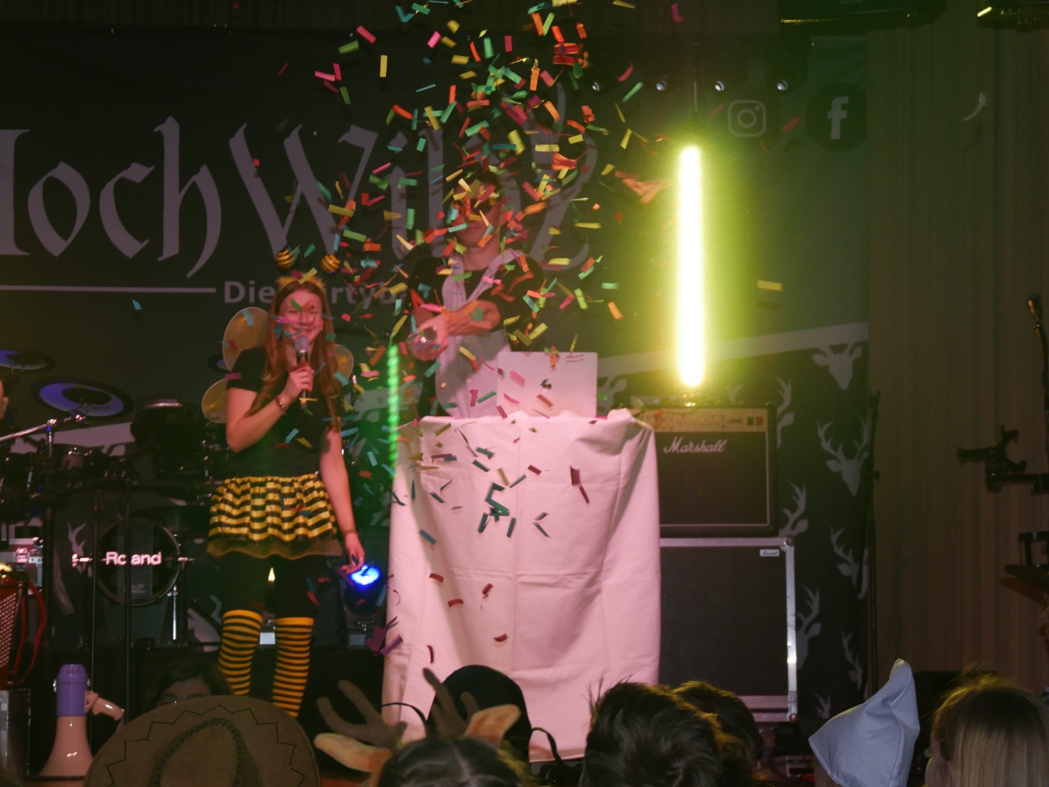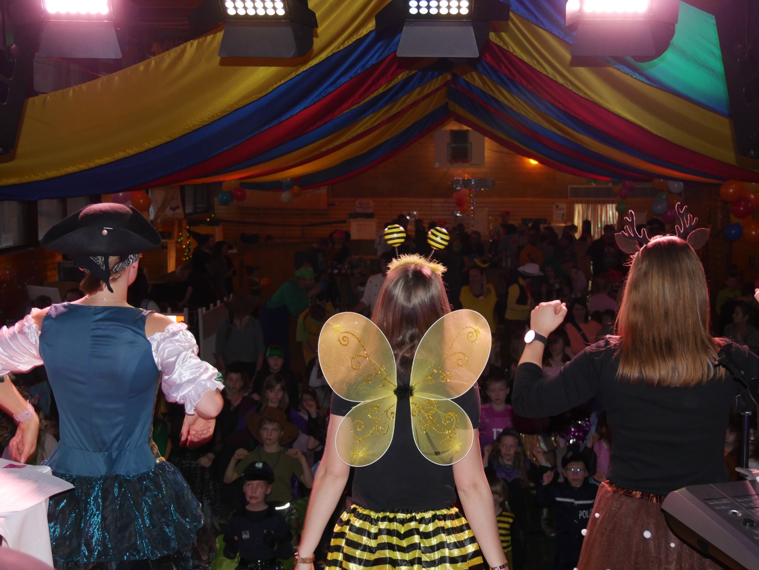 In ein kunterbuntes Meer bestehend aus Cowboys, Feen, Superhelden, Clowns und noch vielem mehr konnte am vergangenen Samstagnachmittag von der Bühne aus geblickt werden. Wie in jedem Jahr fand neben der Abendveranstaltung auch die traditionelle Ohmdener Kinderfasnet in der festlich geschmückten Gemeindehalle statt. Die Jugend des Musikvereins leitete durch das Programm und sorgte mit vielen verschiedenen Spielen und Tänzen für gute Unterhaltung. Die Freude und der Spaß waren sichtbar groß, besonders wenn es nach jeder Spielrunde Süßigkeiten auf die Tanzfläche regnete. Auch die Kinder und Jugendlichen der Jugendkapelle leisteten ganze Arbeit und versorgten alle Gäste mit Essen und Trinken.