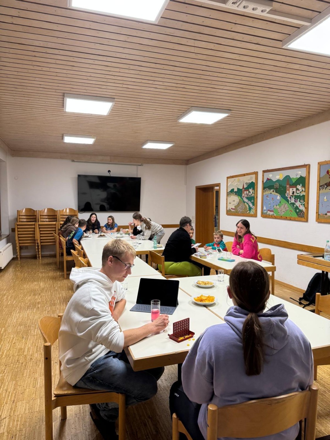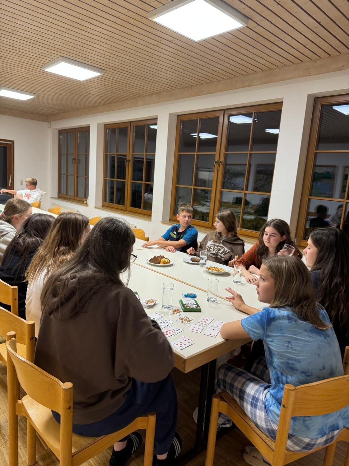 In dieser Zeit bereiteten die Betreuer das Abendessen vor. Nach einem stärkenden schwäbischen Traditionsgericht “Maultaschen“ mit Kartoffelsalat stand der erste Abend unter dem Motto von Gemeinschaftsspielen.