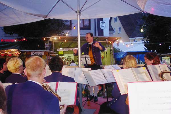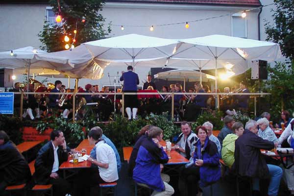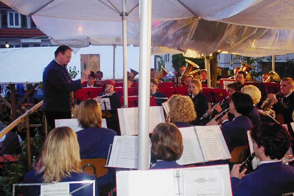 Schlechtes Wetter erwartete uns am Bätscherfest in Holzmaden. Auf der "trockenen" Bühne unserer Musikfreunde versuchten wir, das schlechte Wetter wegzuspielen...