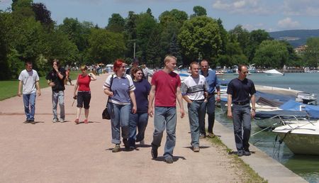 Früh morgens ging es los. Mittagspause am See von Annecy.