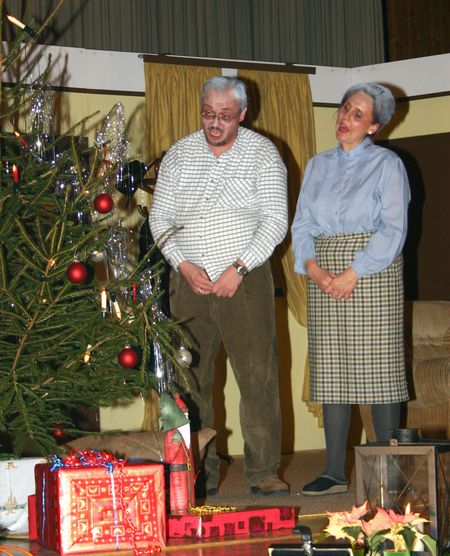 Deutsche Volkslieder, gespielt von der Stammkapelle im Wechsel mit unserem Blechquartett. Danach gab es eine Umbaupause für das Theaterstück...