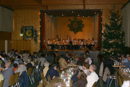 Auftakt der Kinderweihnacht mit der Jugendkapelle und Begrüßung der Gäste durch unseren ersten Vorsitzenden Helmut Rösch.