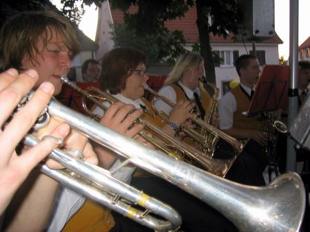 Gegen 20.15 Uhr hörte man sie kommen, unsere Ohmdener Musiker. Mit dem "Juventas-Marsch" marschierte die Kapelle auf den Festplatz ein und sorgte so für ein großes Hallo...