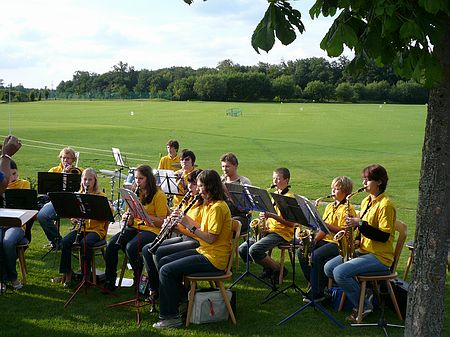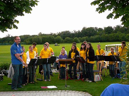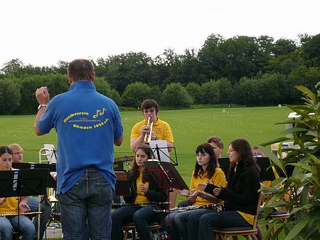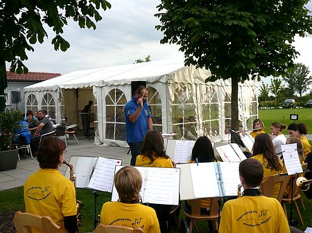 Zum gemütlichen Teil des Tages und zur Siegerehrung spielte unsere Jugendkapelle und sorgte mit einem tollen Auftritt - auch dank der Unterstützung unseres Vize-Dirigenten Thomas Aue - für gute Stimmung auf dem Golfplatz.