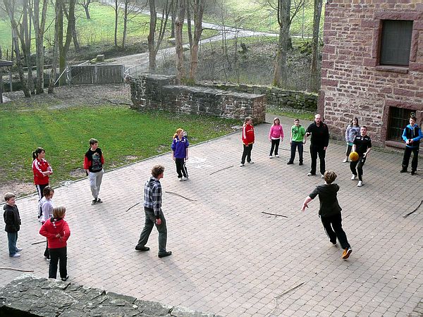 Darüber hinaus bot die Burg auch die Kulisse für spannende Spiele: So galt es am Samstagnachmittag unser Burgfräulein Sabrina aus den Fängen des Schwarzen Ritters zu befreien, der sie im Burgturm gefangen hielt. Hierzu mussten die angehenden Ritter verschiedene Aufgaben gemeinsam lösen um die fünf Magischen Würfel zu erobern mit denen sich das Verlies öffnen ließ.