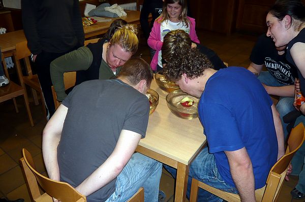 Am Abend gestalteten dann die Jugendlichen das Programm und die Mitarbeiter des AK Jugend mussten beim vierhändig Schminken und Apfelfischen vollen Einsatz zeigen.