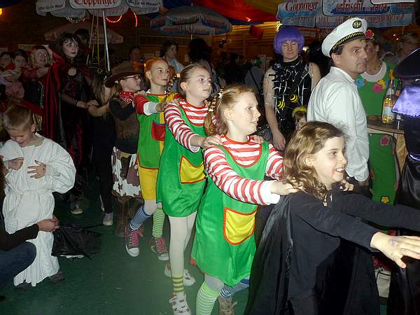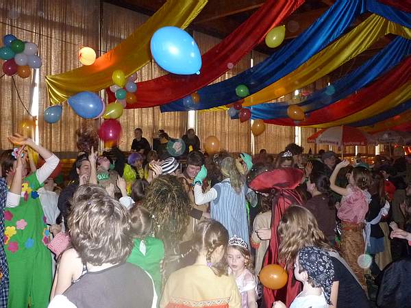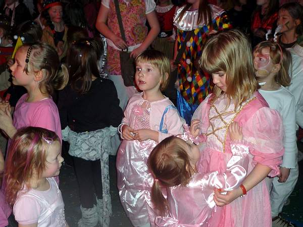 Trubel in der ganzen Gemeindehalle, lauter lachende und fröhliche Kinder, schöne Prinzessinen, lustige Clowns, coole Cowboys - das ist Kinderfasching in Ohmden.
