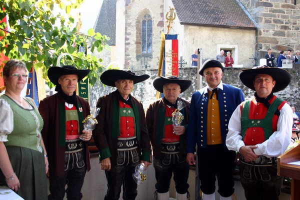 Zu dieser sehr feierlichen Veranstaltung war der 1. Vorsitzende Helmut Rösch und unser Rolf Bezler, der mit 14 Jahren den Beginn der Freundschaft erlebte, mit ihren Frauen zu unser Partnerkapelle nach St. Pankraz gereist, um die Verdienste der Jubilare zu würdigen.
