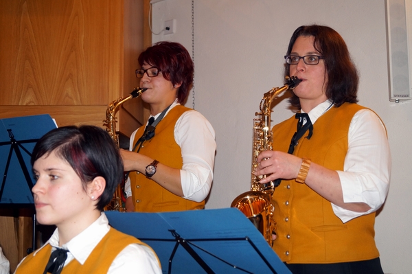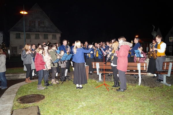 Nach einem geistlichen Wort von Pfarrer Andreas Taut begann die Stammkapelle unter der Leitung von Tanja Bergann mit dem italienischen Konzertstück „Mosaichoralmente“, gefolgt von dem feurigen Volkstanz „Trepak“ aus der bekannten Nussknacker Suite. Mit dem Tuba-Solo „Tuba Concerto Español“ stand nun das Highlight des Abends auf dem Programm: Solist Thorsten Stindl zeigte bei seiner brillanten Darbietung, welche vielseitigen Klänge einer Tuba entlockt werden können. Dies wurde auch vom Publikum mit langanhaltendem Applaus honoriert. Im Anschluss durfte das Saxophonregister mit dem Spiritual „Nobody knows the Trouble I´ve seen“ den Zuhörern aufzeigen, nach was sich die Sklaven im 17. Jahrhundert sehnten. Den Musical-Freunden unter den Gästen wurden nun die Melodien der weltbekannten „West Side Story“ dargeboten. Bevor sich die Stammkapelle mit der Titelmusik aus dem Märchen „Drei Haselnüsse für Aschenbrödel“ verabschiedete, hatte Ulrich Wahl, der kurzweilig durch das Konzert führte, mit einer schwäbischen Variante des Gedichts „Die Weihnachtsmaus“ die Lacher auf seiner Seite.