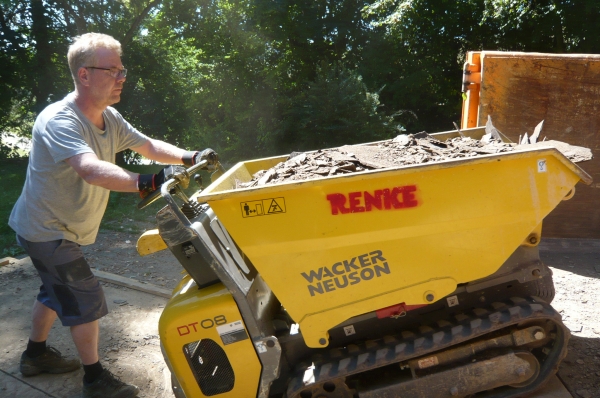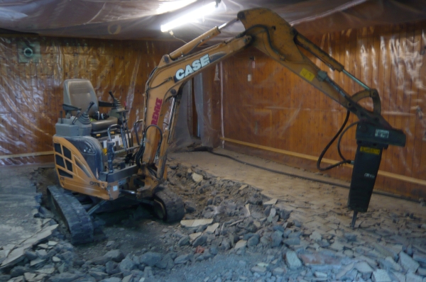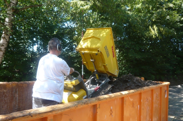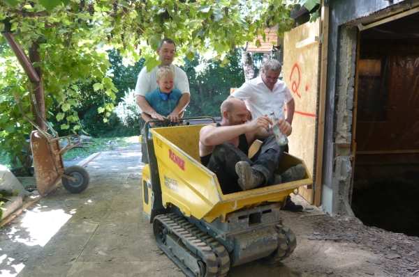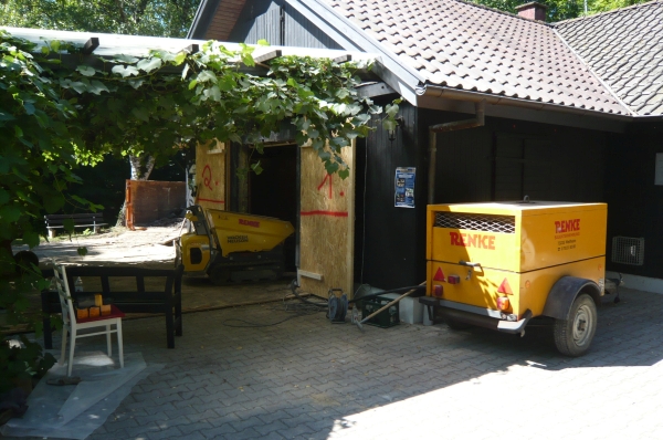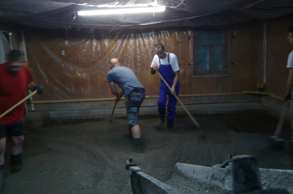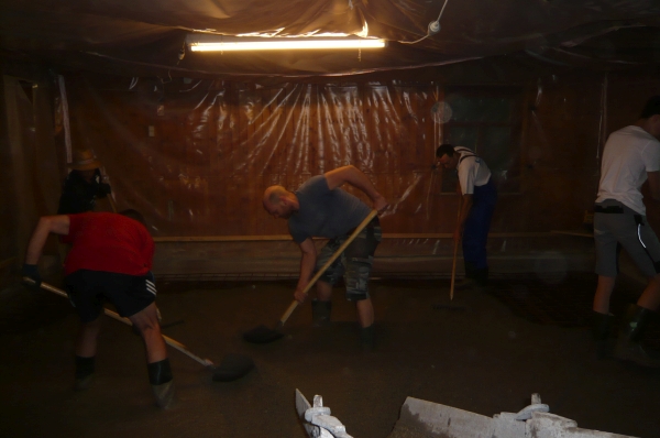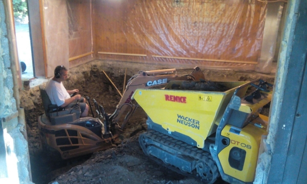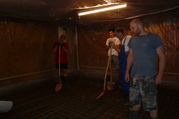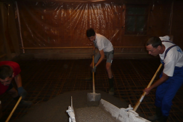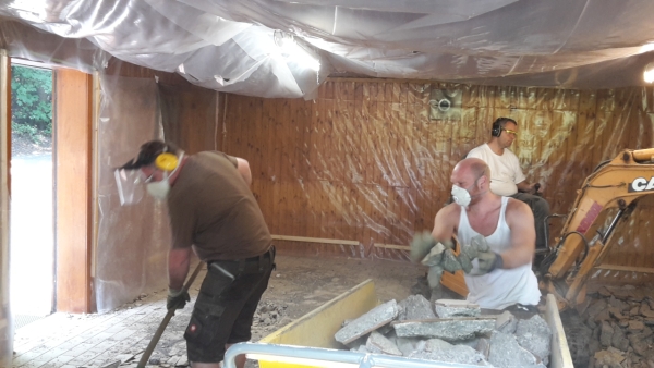 Wie auf den Bildern zu sehen ist, hat sich der Gastraum unseres Musikerhäusles groß verändert. Mit schwerem Gerät, Muskelkraft und etlichen Litern Schweiß wurden die alten Fliesen mit Betonboden entfernt und der Gastraum ausgekoffert. Der damals aufgefüllte Schiefer und Auslöser der Hebung unseres Fußbodens gehört ab sofort der Vergangenheit an. Schadhafte und zum Teil schwach bemessene Fundamente wurden unterfangen und der gesamte Bereich mit Schottermaterial aufgefüllt und verdichtet. Es folgte die Vorbereitung für den neuen Fußbodenaufbau. So konnte letzte Woche erfolgreich die neue Bodenplatte betoniert werden. Nun hoffen wir weiter auf gutes Wetter für eine schnelle Trockenphase, um rasch mit der Wiederherstellung des Gastraumes beginnen zu können. Wir hoffen, dass auch weiterhin alles "so glatt" läuft und wir wie geplant mitte November unsere Wiedereröffnung feiern können. Wer uns tatkräftig unterstützen möchte, darf sich gerne bei bei unserem 2. Vorstand René Bezler melden. Wir freuen uns auf weitere Rückmeldungen.