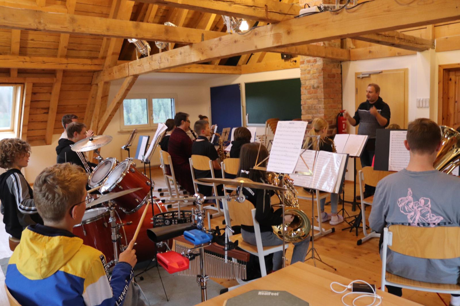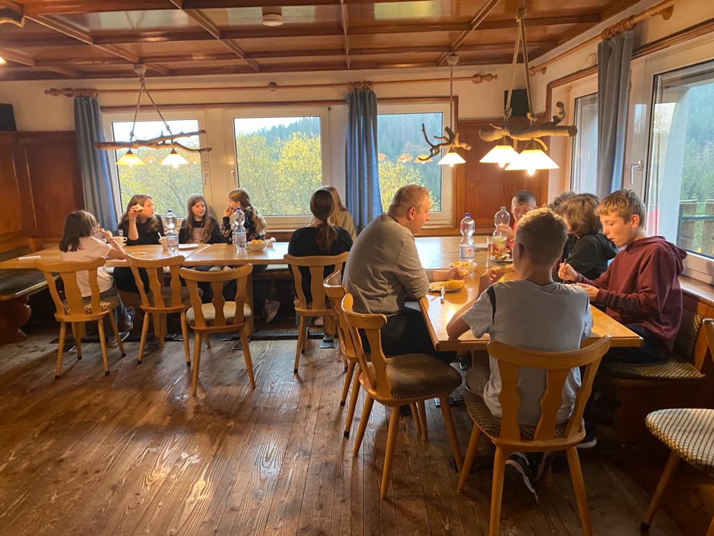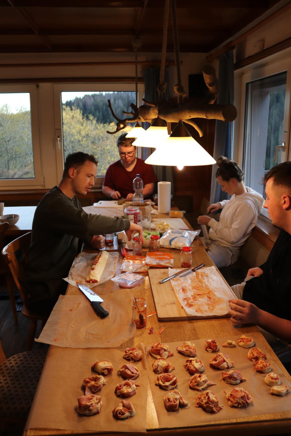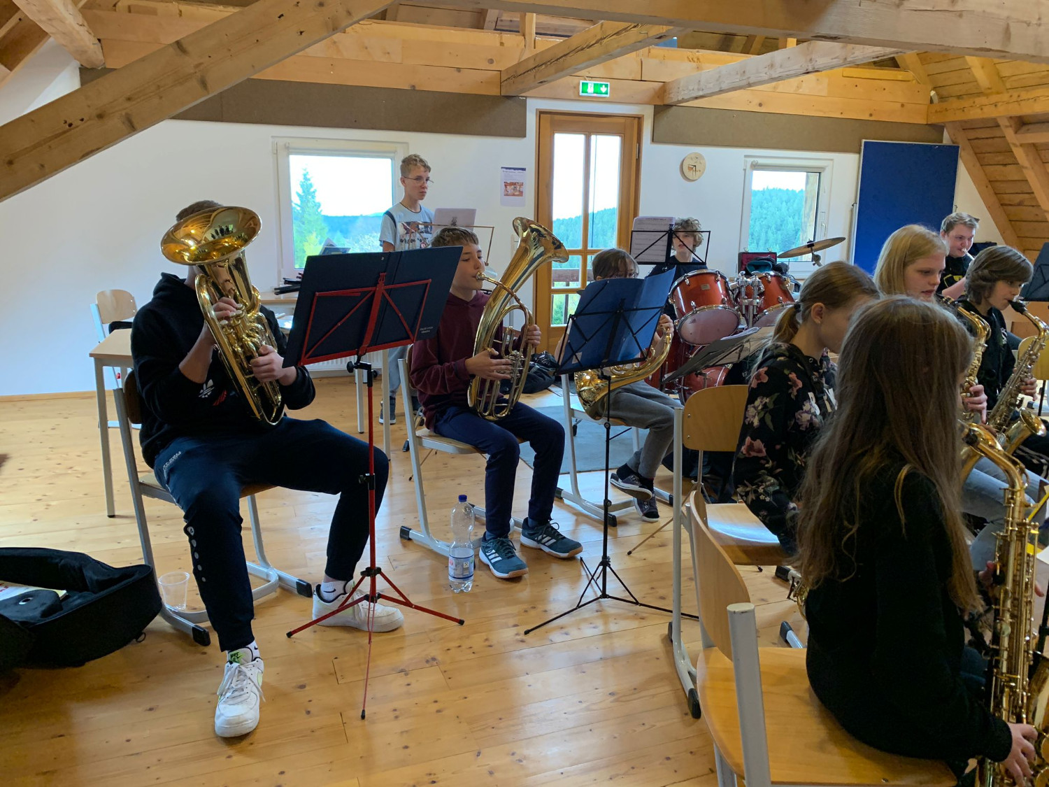 Am 29.10. war es soweit, um 16:48 startete die Juka des MVO zur Hüttenfreizeit. Instrumente, Noten, Schlafsäcke und gute Laune mit im Gepäck begann die Fahrt im Holzbau Pfnürschen Bussle. Um 19:00 kamen die meisten an der Rinkenklause tief im dunklen Schwarzwald an. Nach dem Zimmerbezug und dem Auspacken ging der erste Abend mit Burgern und Kennenlernspielen zu Ende.