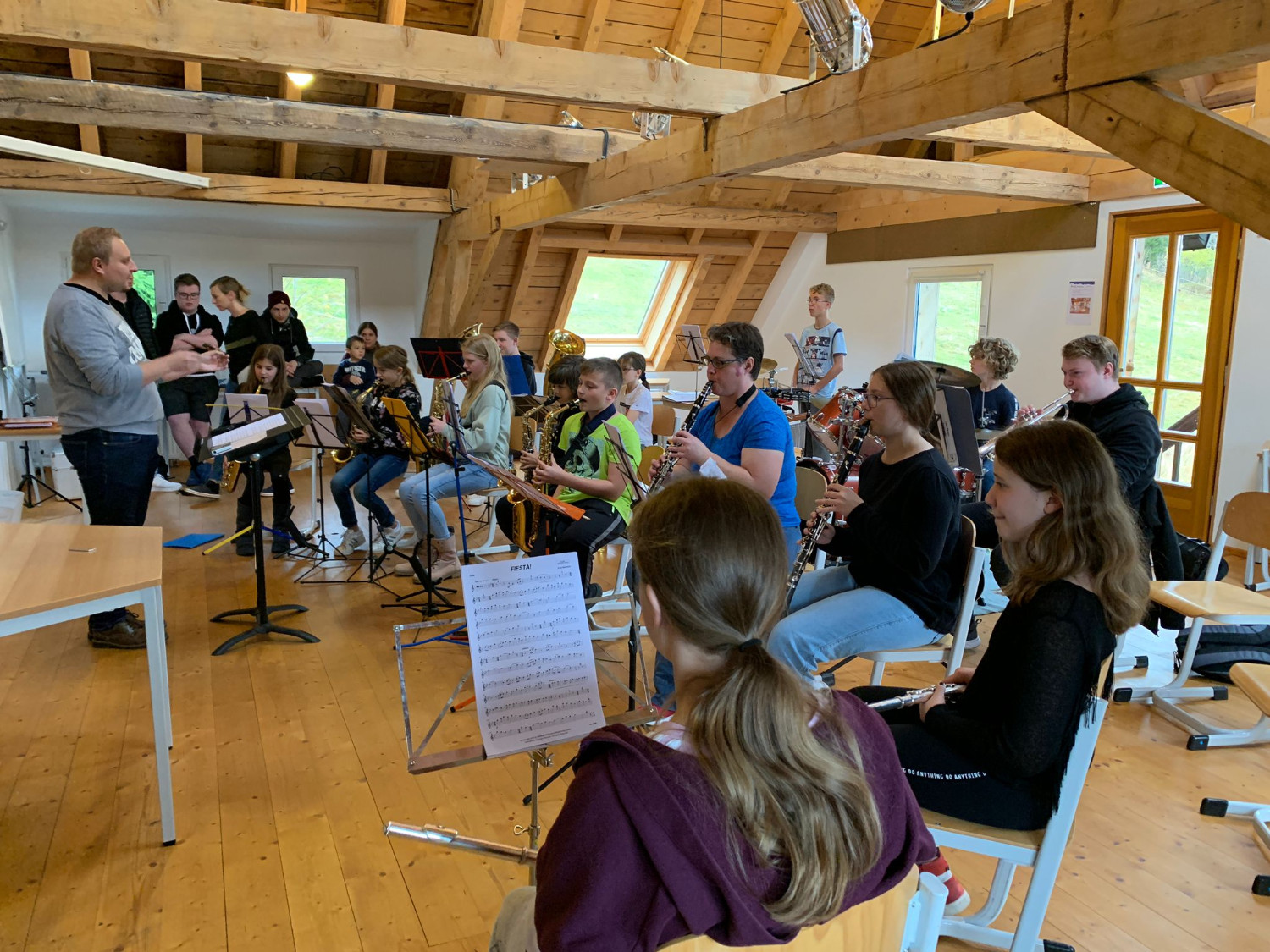 Am Samstag musste die geplante Wanderung wegen Schlechtwetters ausfallen, dafür wurde etwas mehr geprobt. Unserem Jugenddirigenten Kai Volz kam das sehr gelegen, denn 12 Jungmusiker waren zum allerersten Mal dabei. Abends gab es Rote und Käse vom Grill. Die Juka organisierte einen Spieleabend, bei dem viel gerannt und gelacht wurde.