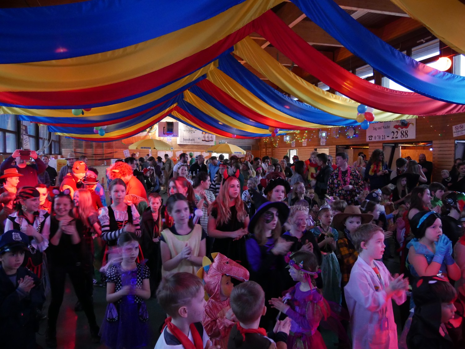 In ein kunterbuntes Meer bestehend aus Cowboys, Feen, Superhelden, Clowns und noch vielem mehr konnte am vergangenen Samstagnachmittag von der Bühne aus geblickt werden. Wie in jedem Jahr fand neben der Abendveranstaltung auch die traditionelle Ohmdener Kinderfasnet in der festlich geschmückten Gemeindehalle statt. Die Jugend des Musikvereins leitete durch das Programm und sorgte mit vielen verschiedenen Spielen und Tänzen für gute Unterhaltung. Die Freude und der Spaß der Kinder waren sichtbar groß, besonders wenn es nach jeder Spielrunde Süßigkeiten auf die Tanzfläche regnete. Auch die Jugendlichen der Jugendkapelle leisteten ganze Arbeit und versorgten alle Gäste mit Essen und Trinken.