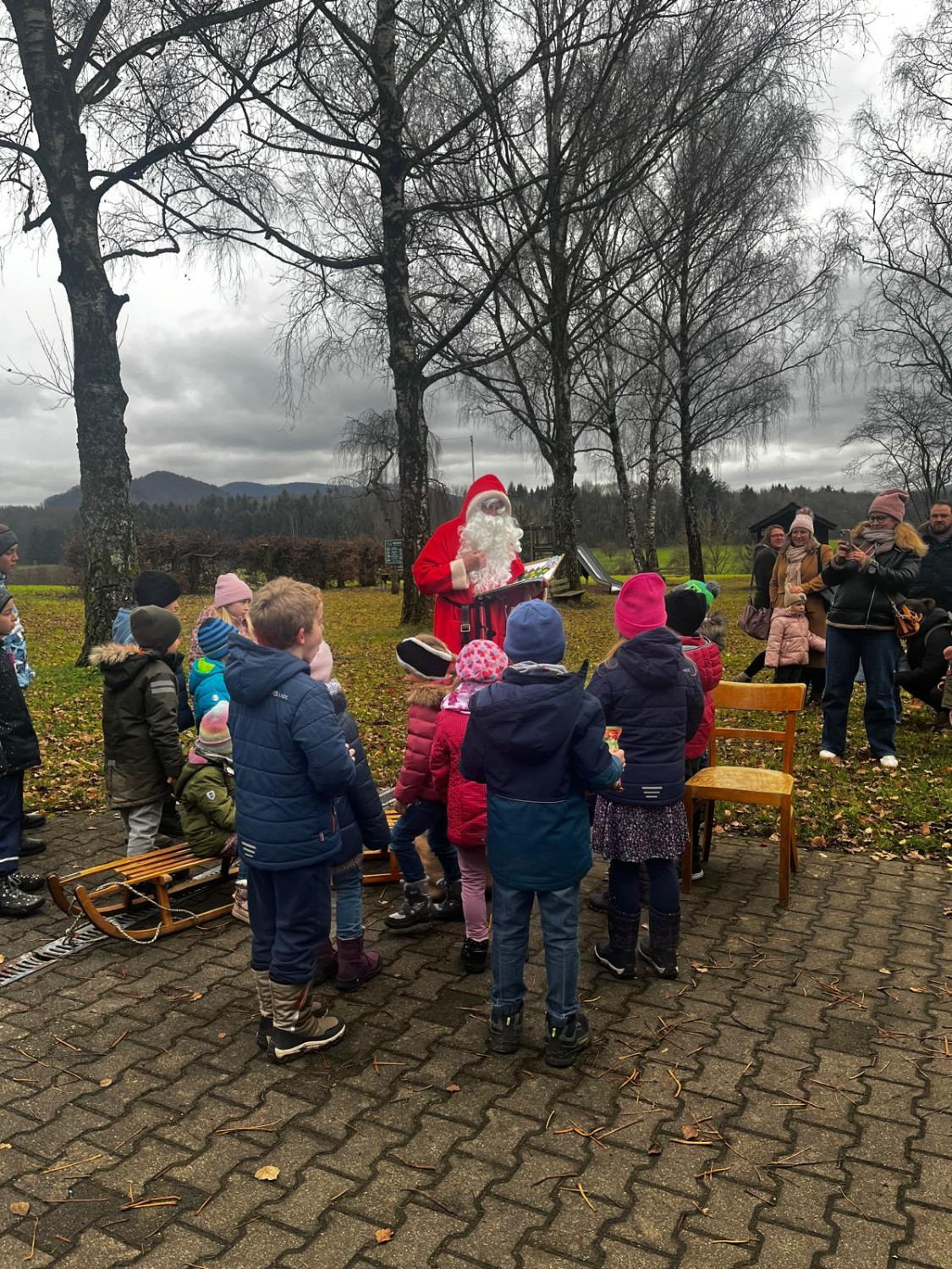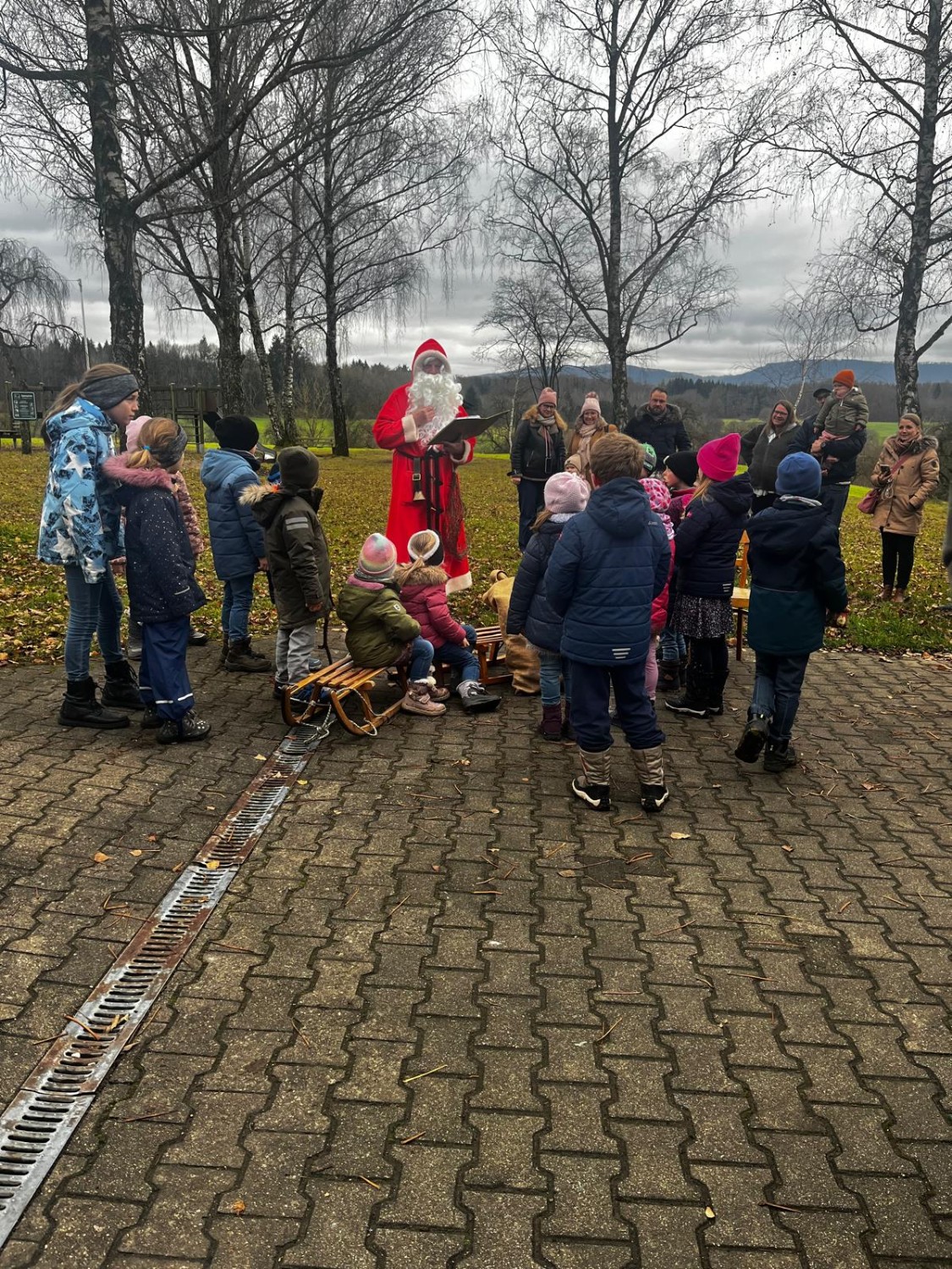 Bepackt mit Geschenke und voller Vorfreude wurde der Nikolaus musikalisch an unserem Musikerhäusle begrüßt. Nachdem sich die Kinder ihre Geschenke abgeholt hatten, wurde noch eine kleine Geschichte aus dem Goldenen Buch erzählt. Danach machte sich der Nikolaus wieder auf dem Weg zurück zu seinem Schlitten.