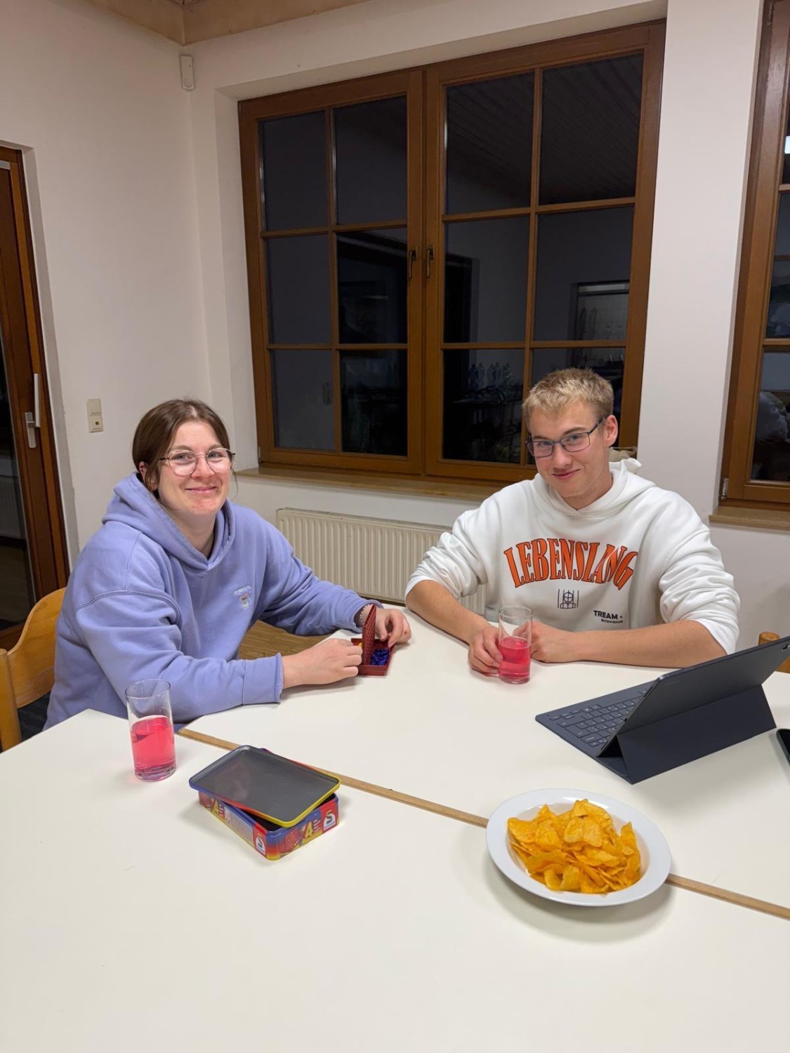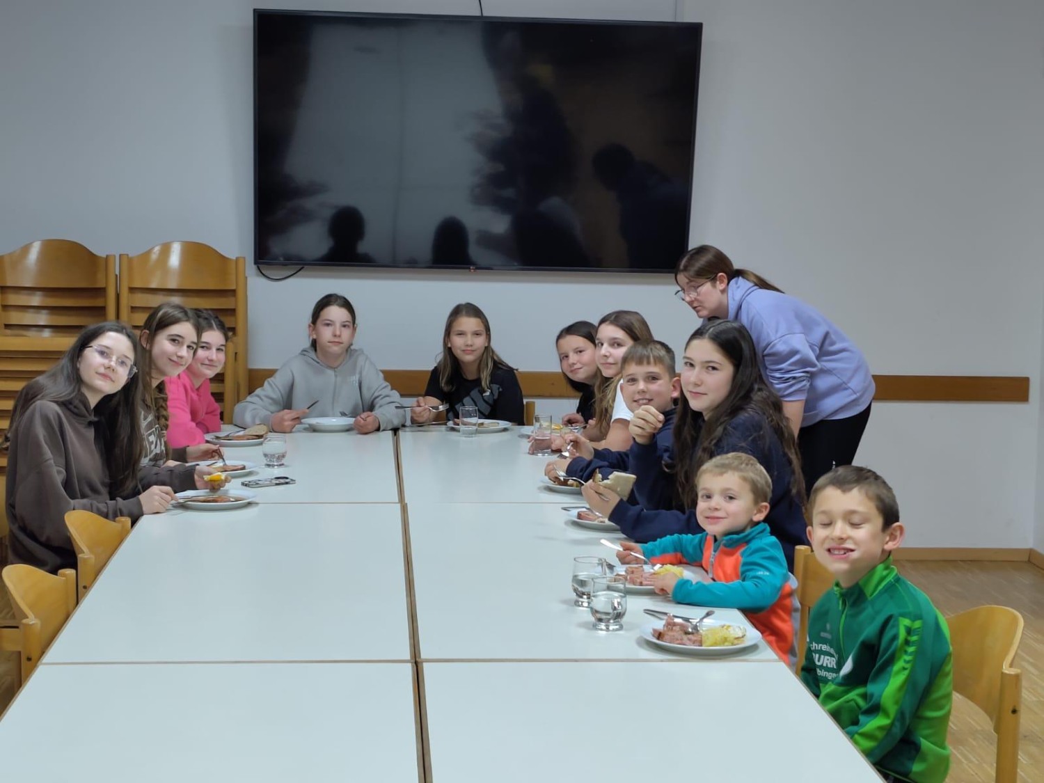 In dieser Zeit bereiteten die Betreuer das Abendessen vor. Nach einem stärkenden schwäbischen Traditionsgericht “Maultaschen“ mit Kartoffelsalat stand der erste Abend unter dem Motto von Gemeinschaftsspielen.