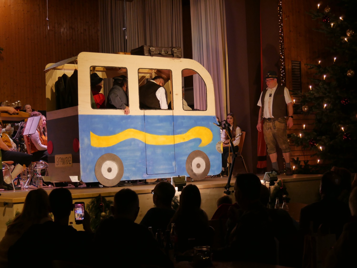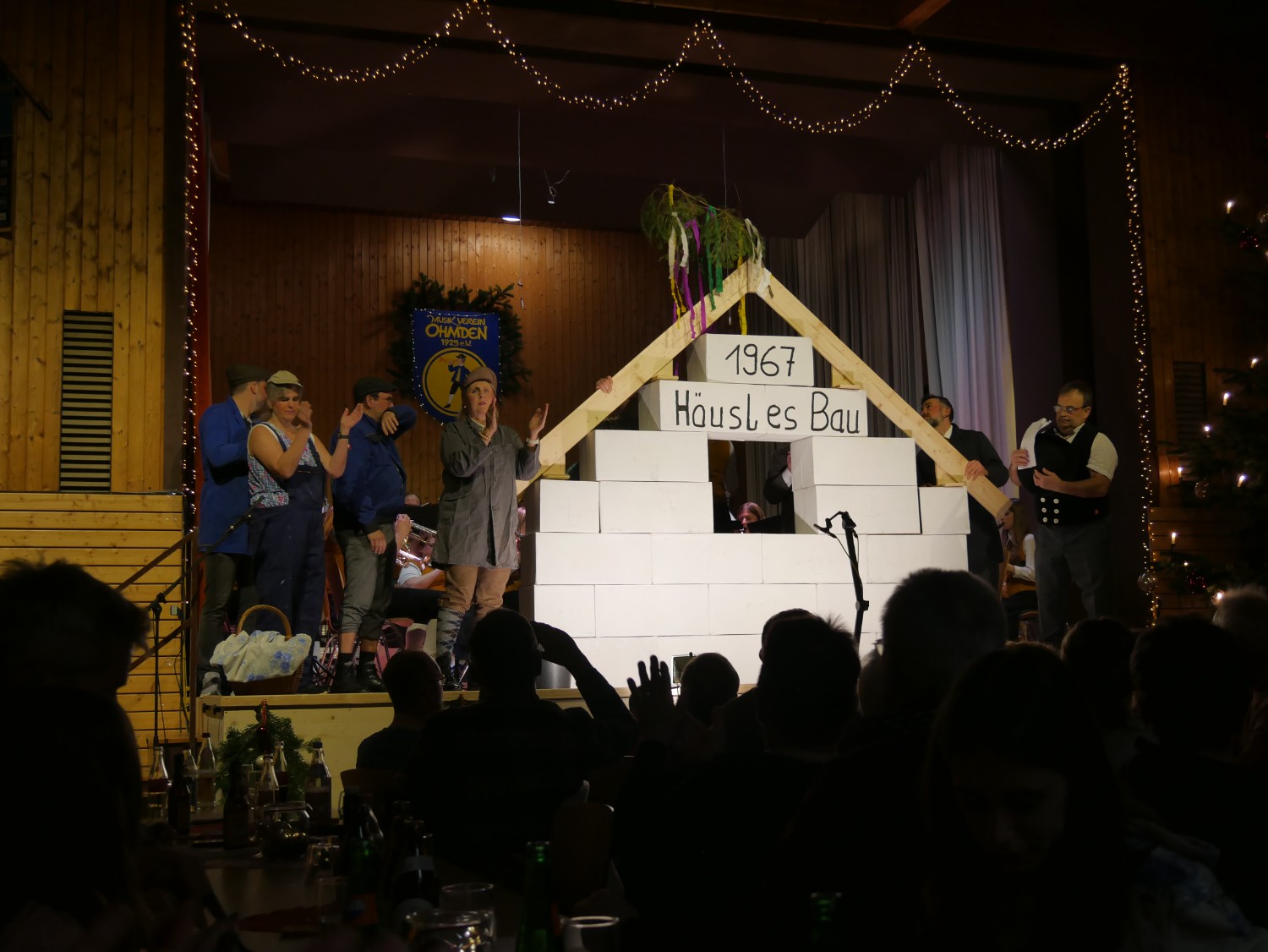 Schließlich durfte zum krönenden Abschluss ein Musikstück nicht fehlen – der „Böhmische Traum“, oder wie er an diesem Abend genannt wurde, der „Ohmdener Traum“. Dafür nahmen alle Akteure nochmals gemeinsam auf der Bühne Platz. Traditionell wurde der Abend stimmungsvoll mit Weihnachtsliedern beendet.