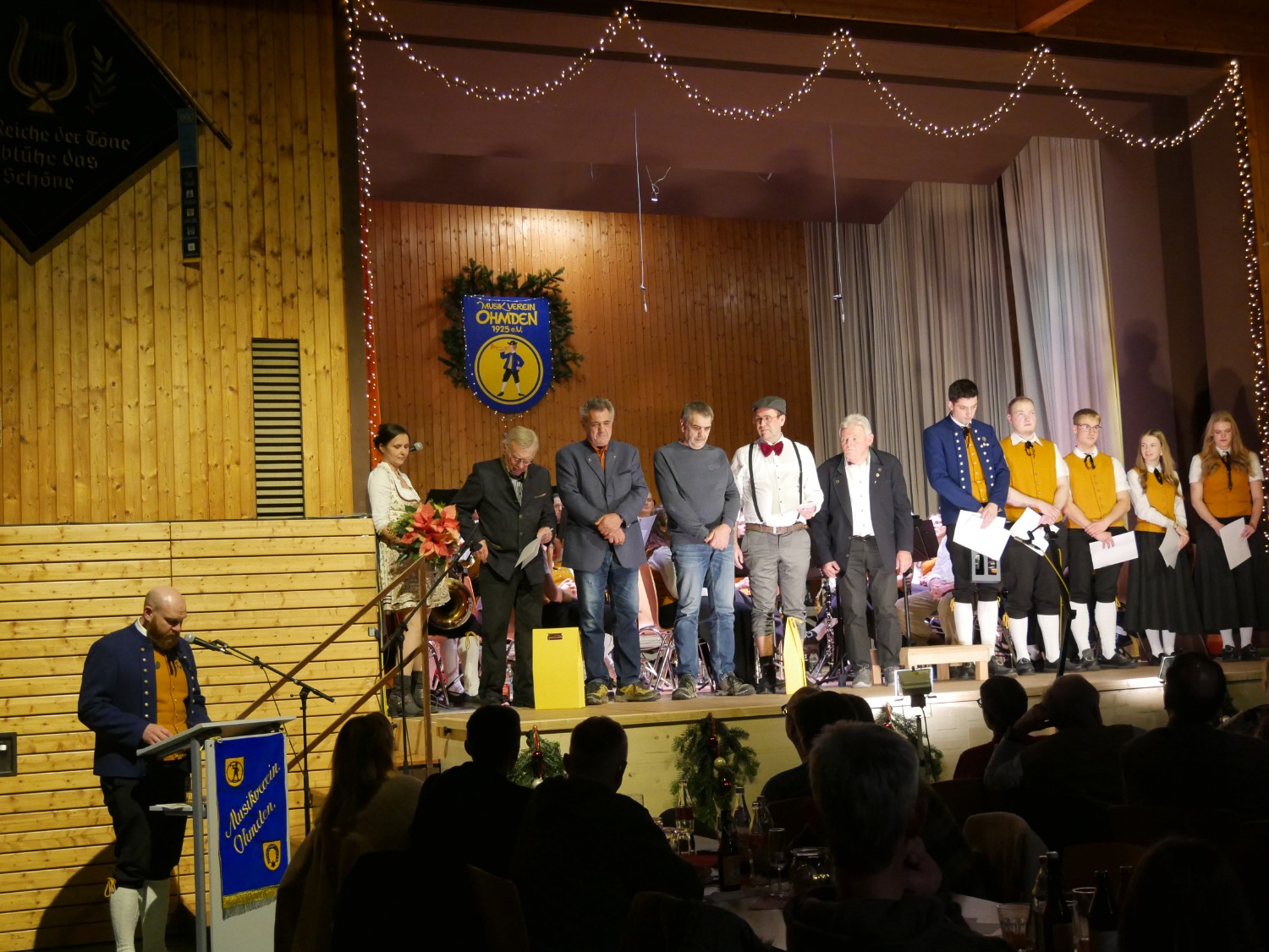 Am vergangenen Samstag, den 13. Dezember 2025 fand die traditionelle Winter- und Weihnachtsfeier des Musikverein Ohmden statt. Zum Ausklang des Jubiläumsjahrs stand die Gestaltung des Abends unter dem Motto „Wunschkonzert – Das Beste aus 100 Jahren Musikverein Ohmden!“. Hierbei nahmen Jugendkapelle, Stammkapelle und Theatergruppe gemeinsam auf der Bühne Platz und ließen die Vereinsgeschichte sowohl musikalisch als auch szenisch Revue passieren.