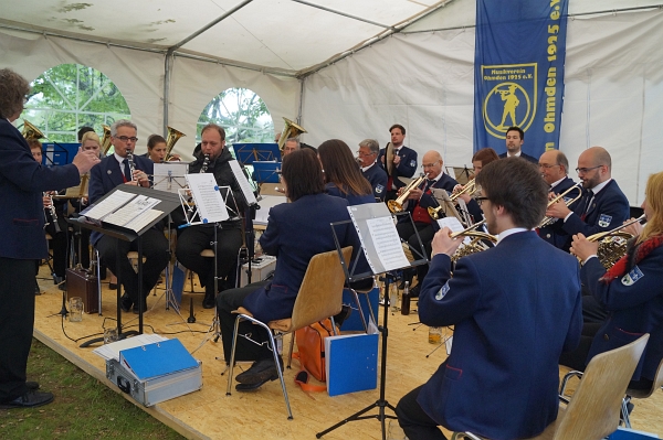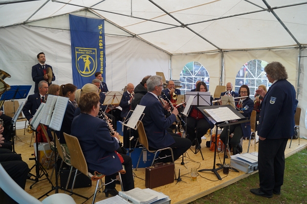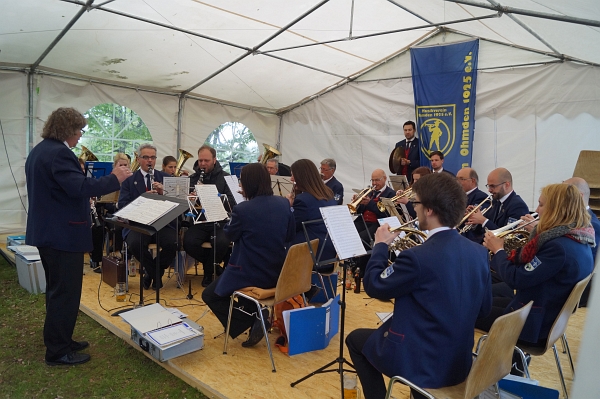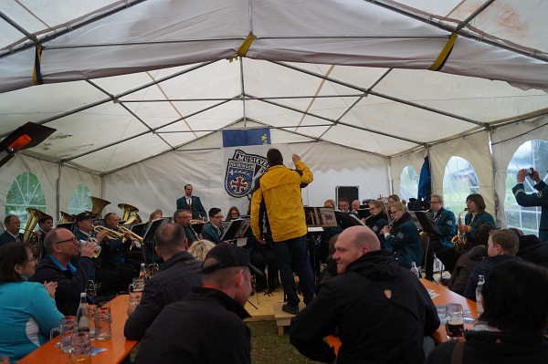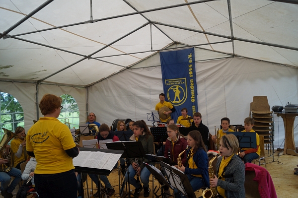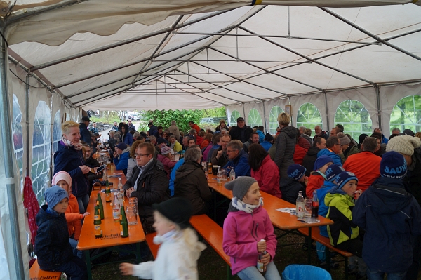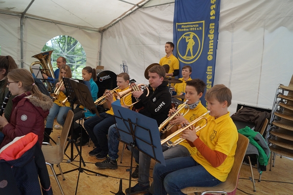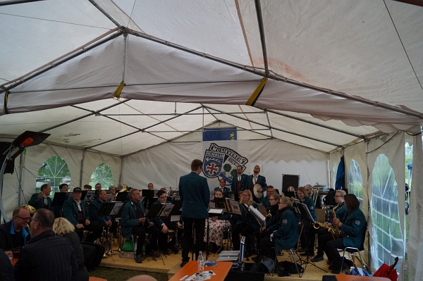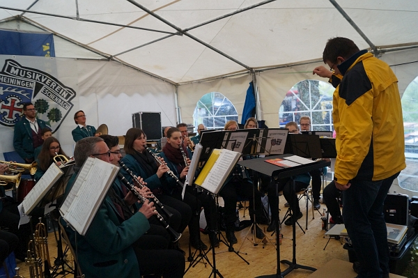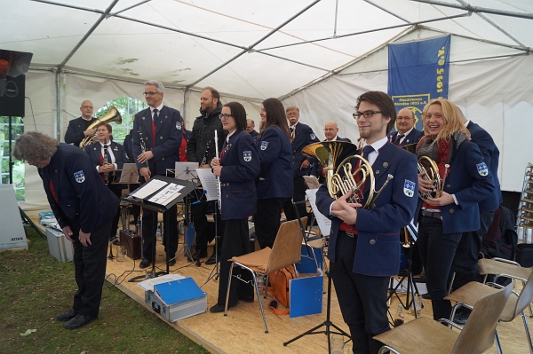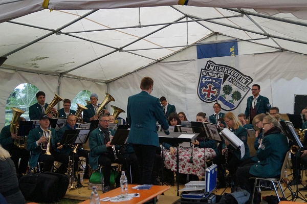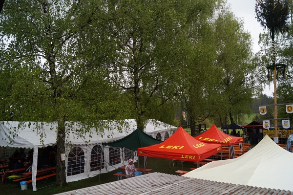 Der Blick aus dem Fenster verhieß am Morgen des 01. Mai nichts Gutes. Das gute Wetter vom Vortag war verflogen und es regnete aus Kübeln. Trotzdem ließen sich viele Besucher den Tag nicht vom Wetter vermiesen und machten sich in Richtung Musikerhäusle auf. Schon zum Frühschoppen, bei dem der Musikverein Kohlberg aufspielte, war das Festzelt gut gefüllt. Über die Mittagszeit nahm dann die Jugendkapelle auf der Bühne im Zelt Platz. Am Nachmittag durften wir die Musiker aus Heiningen-Eschenbach auf dem Fest begrüßen.