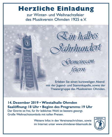 Am vergangenen Samstag, den 14. Dezember war es wieder soweit und es öffneten sich die Türen der Ohmdener Gemeindehalle zur traditionellen Winter- und Weihnachtsfeier des Musikvereins Ohmden.