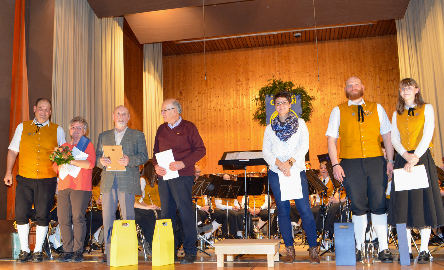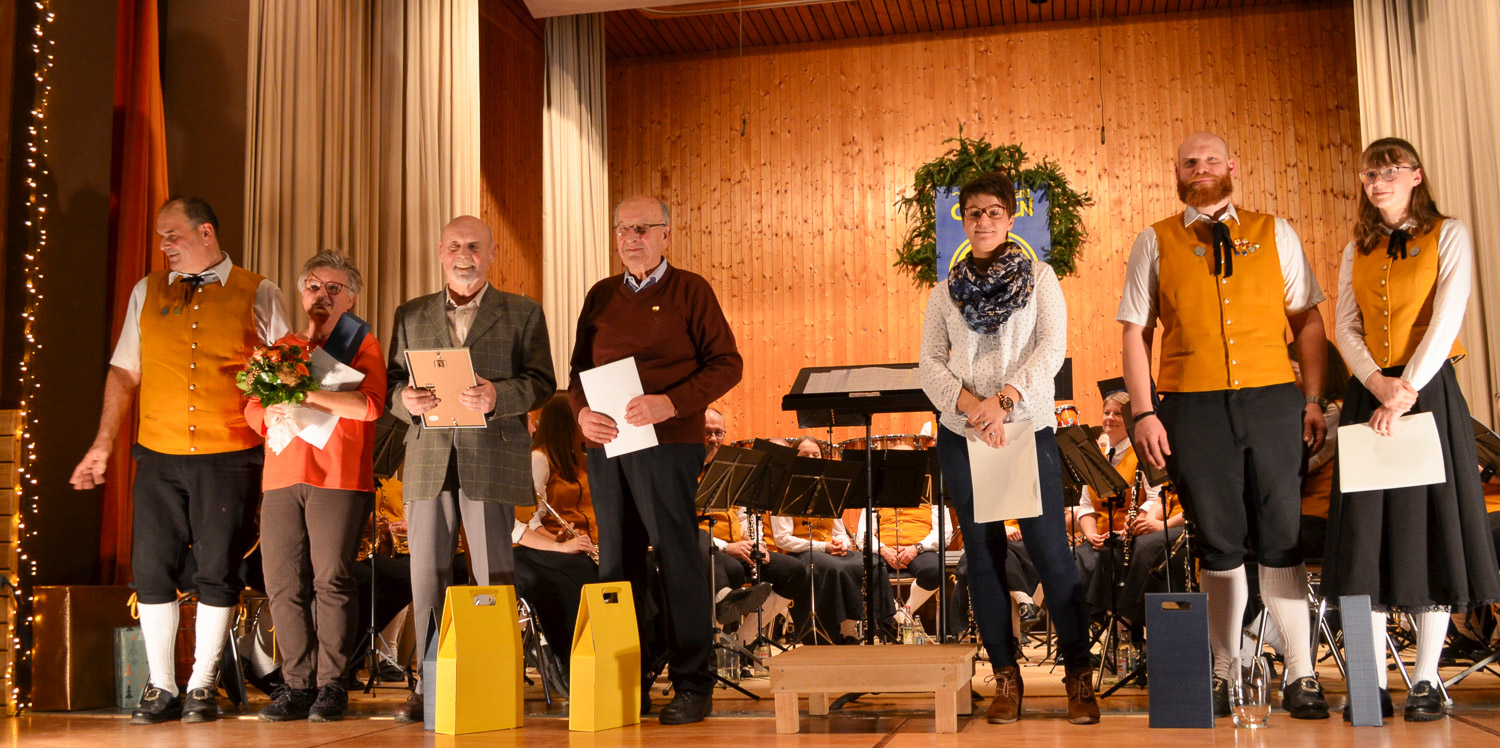 Der Musikverein pflegt schon seit vielen Jahren die Tradition am Abend der Weihnachtsfeier langjährigen Mitgliedern zu danken. Die Ehrungen nahmen die Vorsitzenden René Bezler und Achim Attinger vor. Zu Ehren der Jubilare wurde der Ehrungsmarsch „St. Pankrazer Jubiläumsmarsch“, unter der Leitung unseres Ehrendirigenten Eberhard Attinger, gespielt.