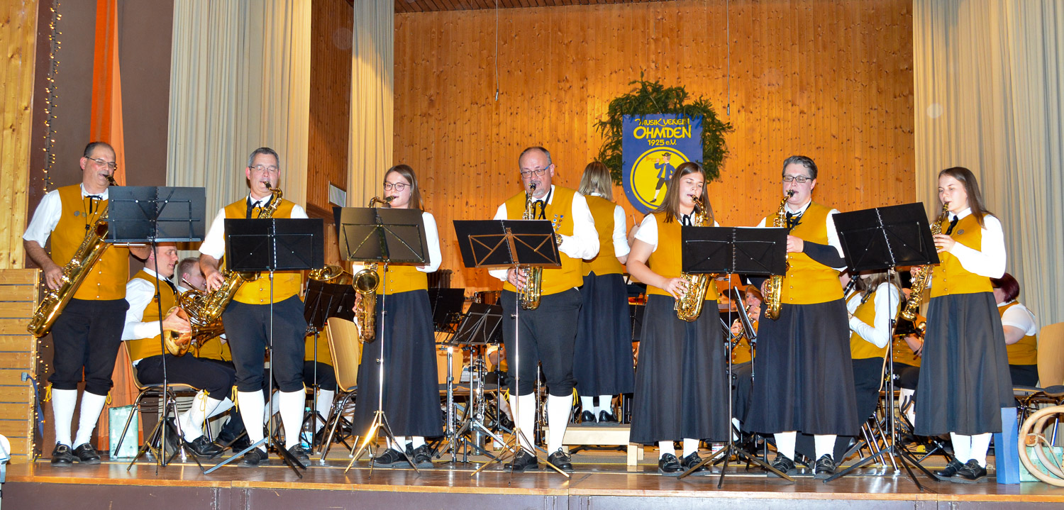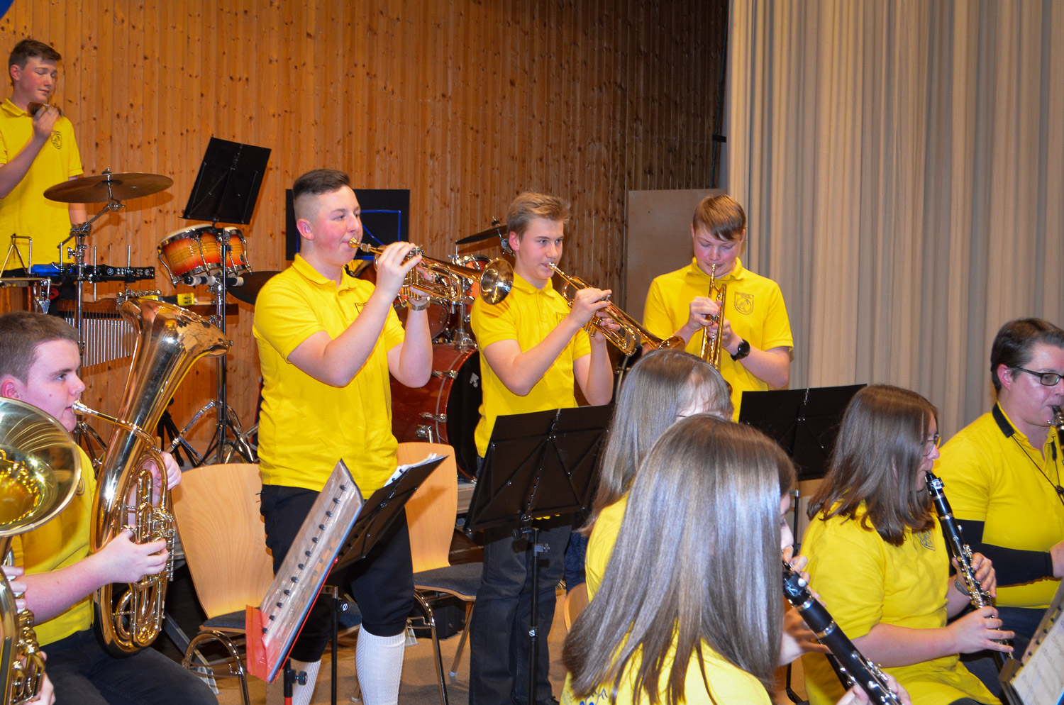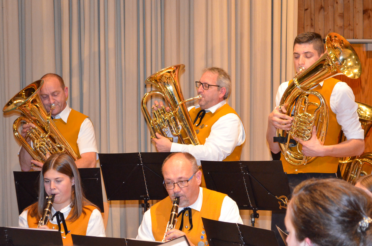 Den musikalischen Auftakt durfte die Jugendkapelle unter Leitung von Kai Volz machen. Stücke wie „The Avengers“, „Moana“ oder „The Polar Express“ begeisterten das Publikum. Mit viel Beifall und sogar einem Stück als Zugabe verließen die Jugendlichen die Bühne und machten Platz für die Stammkapelle.