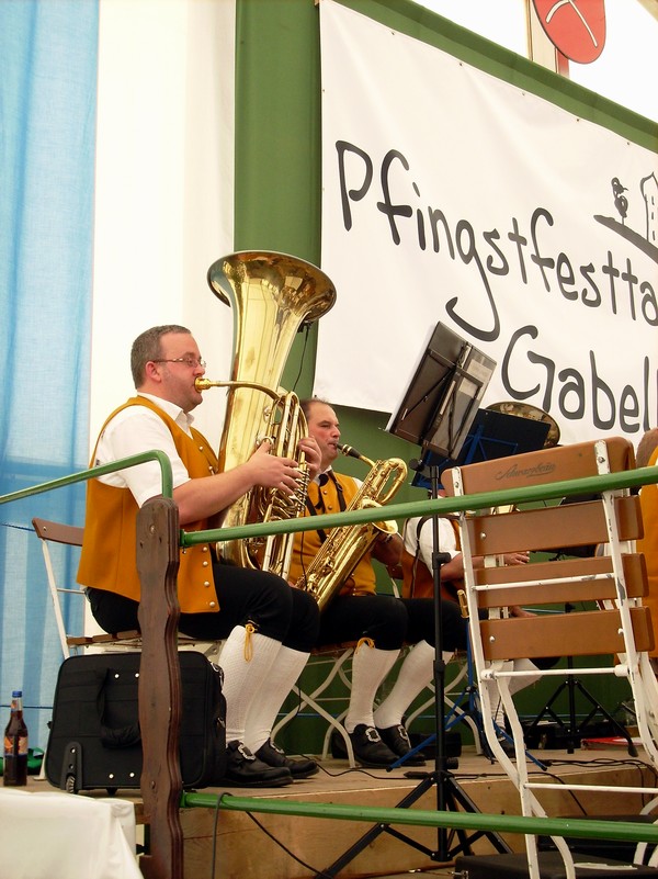 Am Pfingstsonntag machte sich die Stammkapelle zusammen mit den treusten passiven Mitgliedern auf in Richtung Zusmarshausen, um die Musikkameraden in Gabelbach auf deren Pfingsttagen zu Besuchen. Nachmittags sorgten die Ohmdener Musiker im Festzelt für super Stimmung, bevor am Abend die "Blasmusikprofis" von Gloria übernahmen. Allen machte der Ausflug wieder einmal viel Spaß.