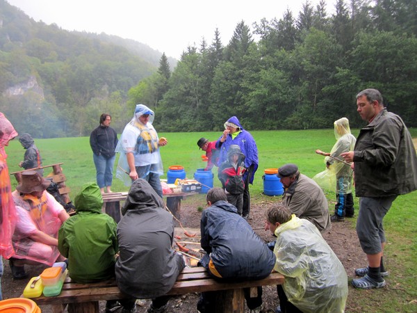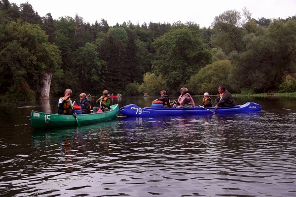 Nach einer schnellen Einweisung und die Verteilung der Boote ging es dann auch schon aufs Wasser. Zwischendurch setzte dann auch das Hungergefühl ein, sodass der Grill angeschmissen und Würstchen gebraten wurden. Leider setzte während dem Essen das einzige Mal am Tag Regen ein, welcher sich zum Glück schnell wieder verzog. So konnte dann wieder weiter gepaddelt werden und fast alle kamen trocken in Sigmaringen an.