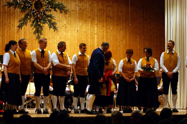 Eröffnet wurde der Abend durch den 1. Vorsitzenden Helmut Rösch. Dieser begrüßte die Gästeschar in der festlich geschmückten Gemeindehalle und blickte auf die Höhepunkte des Vereinsjahres wie z.B. der Besuch der Partnerkapelle in St. Pankraz /Südtirol zurück. Aufgrund dieses unvergesslichen Highlights wurde das Motto „Zu Gast in Südtirol“ gewählt.