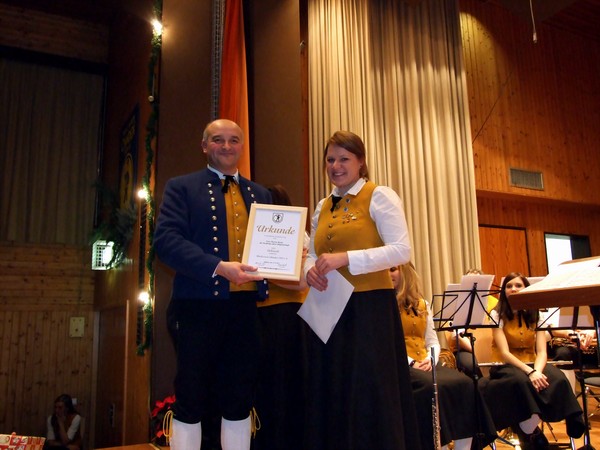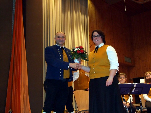 Tanja Bergann, die seit nunmehr 10 Jahren die Stammkapelle leitet, wurde ebenfalls dafür geehrt. Den Jubilaren wurde mit dem Marsch „Dem Land Tirol die Treue“, welchen Ehrendirigent Eberhart Attinger dirigierte, gedankt.