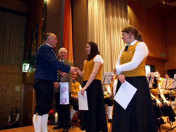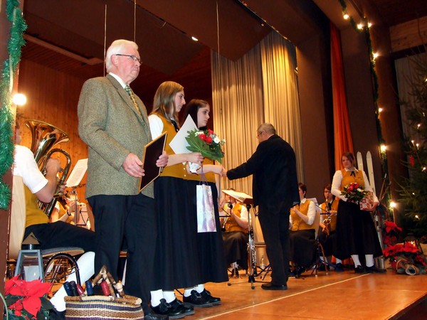 Der Musikverein pflegt schon seit vielen Jahren die Tradition am Abend der Weihnachtsfeier langjährige Mitglieder zu danken. So konnte die Mitglieder Therese Bezler, Patrick Döbel sowie Nadine Fischer für 20-jährige Mitgliedschaft geehrt werden. Klaus Attinger, Heinz Ruff und Dietmar Winter wurden nach 40-jähriger Vereinszugehörigkeit zu Ehrenmitgliedern ernannt. Joachim Kamin als Vertreter des Blasmusikverbandes Esslingen führte die Verbandsehrungen durch, in denen Gina Gößling für 10-jähriges und Therese Bezler für 20-jähriges aktives Musizieren ausgezeichnet wurden.