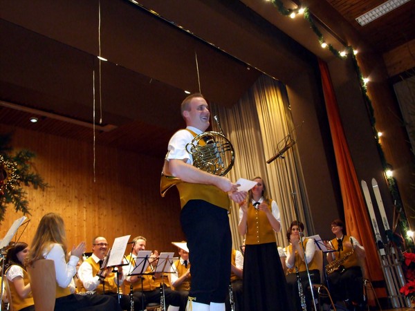 Mit dem Konzertwalzer „Urlaub in Tirol“ und der „Lana-Polka“ verabschiedete sich die Stammkapelle mit der geforderten Zugabe, dem Bozener Bergsteiger Marsch, von der Bühne, um gemeinsam mit der Jugendkapelle direkt bei Gästen den weihnachtlichen Ausklang des Konzertes zu spielen.