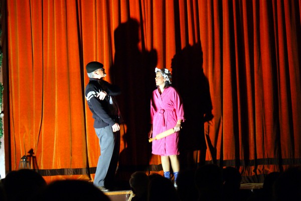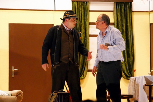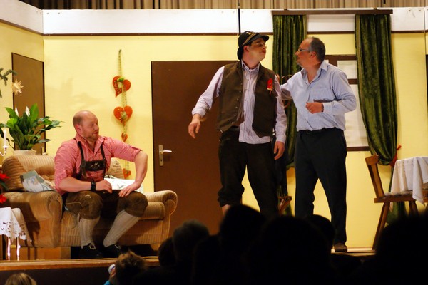 Nach einer kurzen Umbaupause, in der Lose für die gutbestückte Tombola gekauft werden konnte, öffnete sich der Vorhang fürs „Ohmdener Volkstheater“. In der schwäbischen Komödie „Dr Gsondheitsapostel“ geht es um Fritz Birzle (Thomas Aue) und dessen Frau Elsa (Andrea Schneider) die einen Biokostfimmel hat. Zusammen gründete sie mit der Witwe Elvira Hutzenlaub (Susanne Rehm) den „Ohmdener Gesundheitsverein“. Beide warteten auf Luis Körner (Markus Wennrich), ein Referent des südtiroler Gesundheitsverbandes sowie der neuen Trinkbekanntschaft von Fritz und dessen Freund Reinhold (Matthias Lutz). Fritz möchte dieses Treffen natürlich verhindern und bittet dafür seine Tochter Renate (Lisa Gößling) um Hilfe. Ihr neuer Freund Michael (René Bezler) soll sich als Luis ausgeben und Elsa von ihrem Biokostfimmel abbringen. Dies sorgte natürlich für viele Missverständnisse und beim Publikum für großen Spaß.