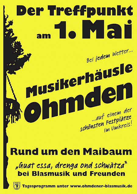 Es ist wieder soweit! Am 1. Mai lädt der Musikverein Ohmden zum traditionellen Maifest rund ums Musikerhäusle ein. Ab 11 Uhr wird die Stammkapelle des Musikvereins Ohmden für gute Unterhaltung auf dem Festplatz sorgen. Zur Mittagszeit werden die Jugendlichen der Jugendkapelle unter dem Maibaum Platz nehmen und zum Festausklang dürfen wir die Musikerinnen und Musiker aus Liebersbronn bei uns begrüßen.