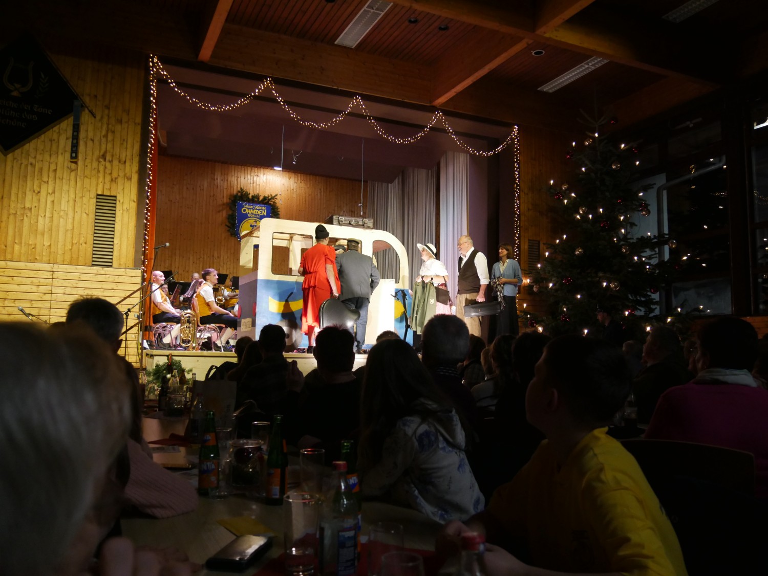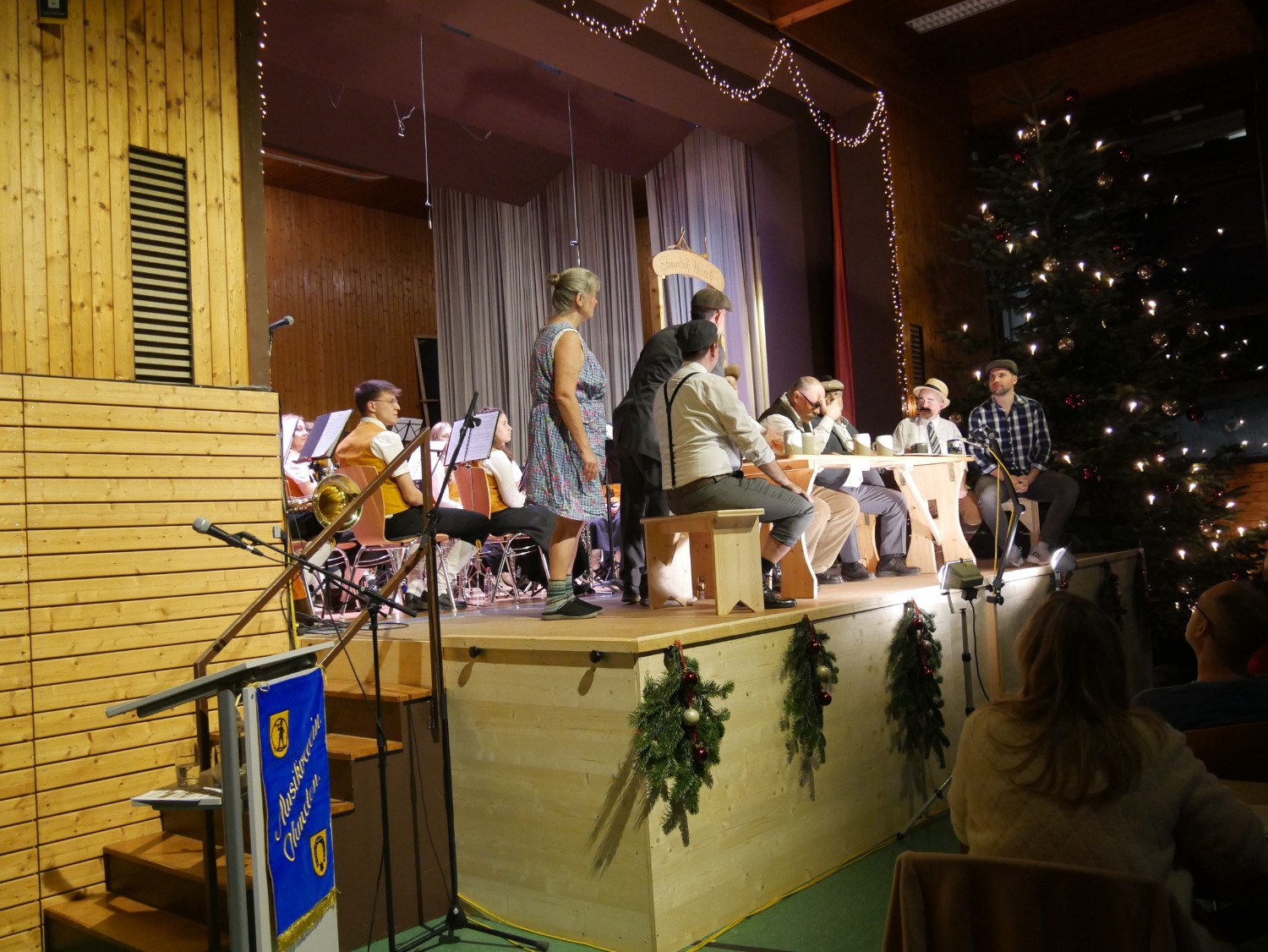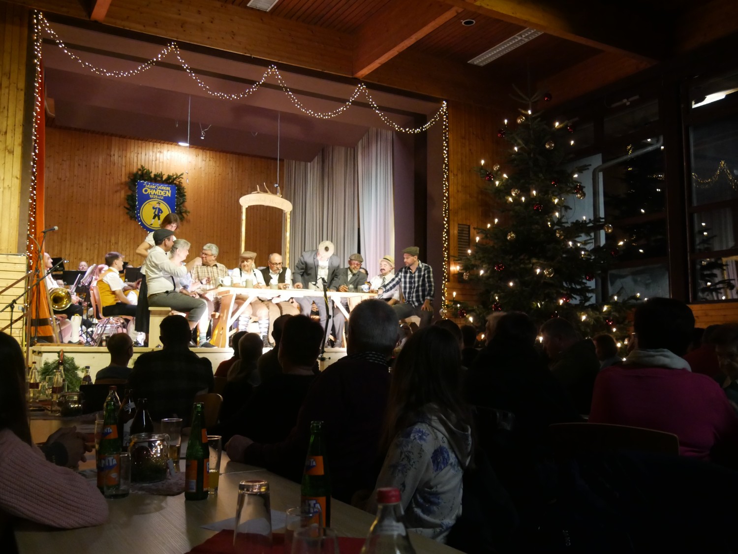Schließlich durfte zum krönenden Abschluss ein Musikstück nicht fehlen – der „Böhmische Traum“, oder wie er an diesem Abend genannt wurde, der „Ohmdener Traum“. Dafür nahmen alle Akteure nochmals gemeinsam auf der Bühne Platz. Traditionell wurde der Abend stimmungsvoll mit Weihnachtsliedern beendet.
