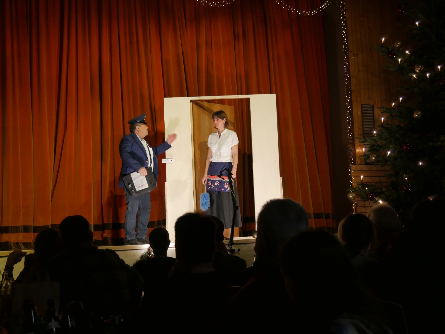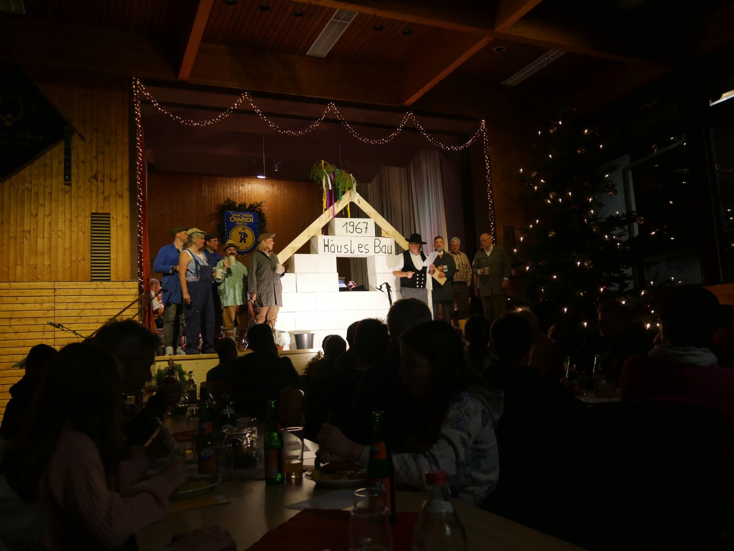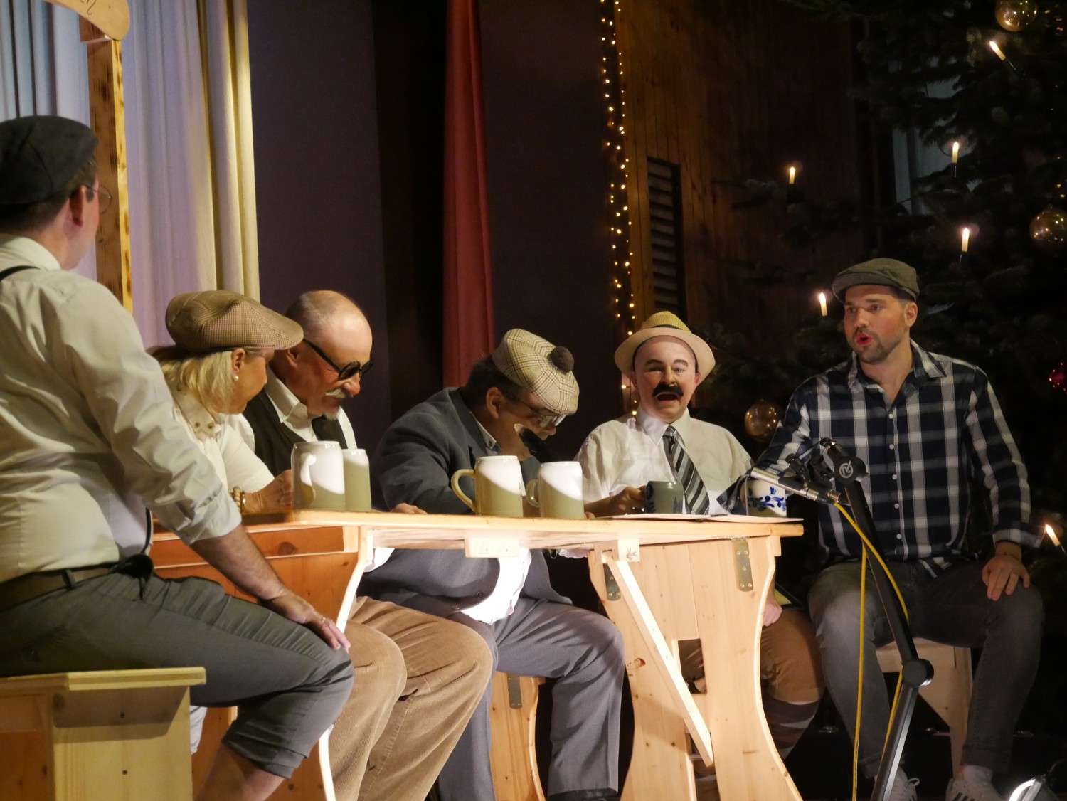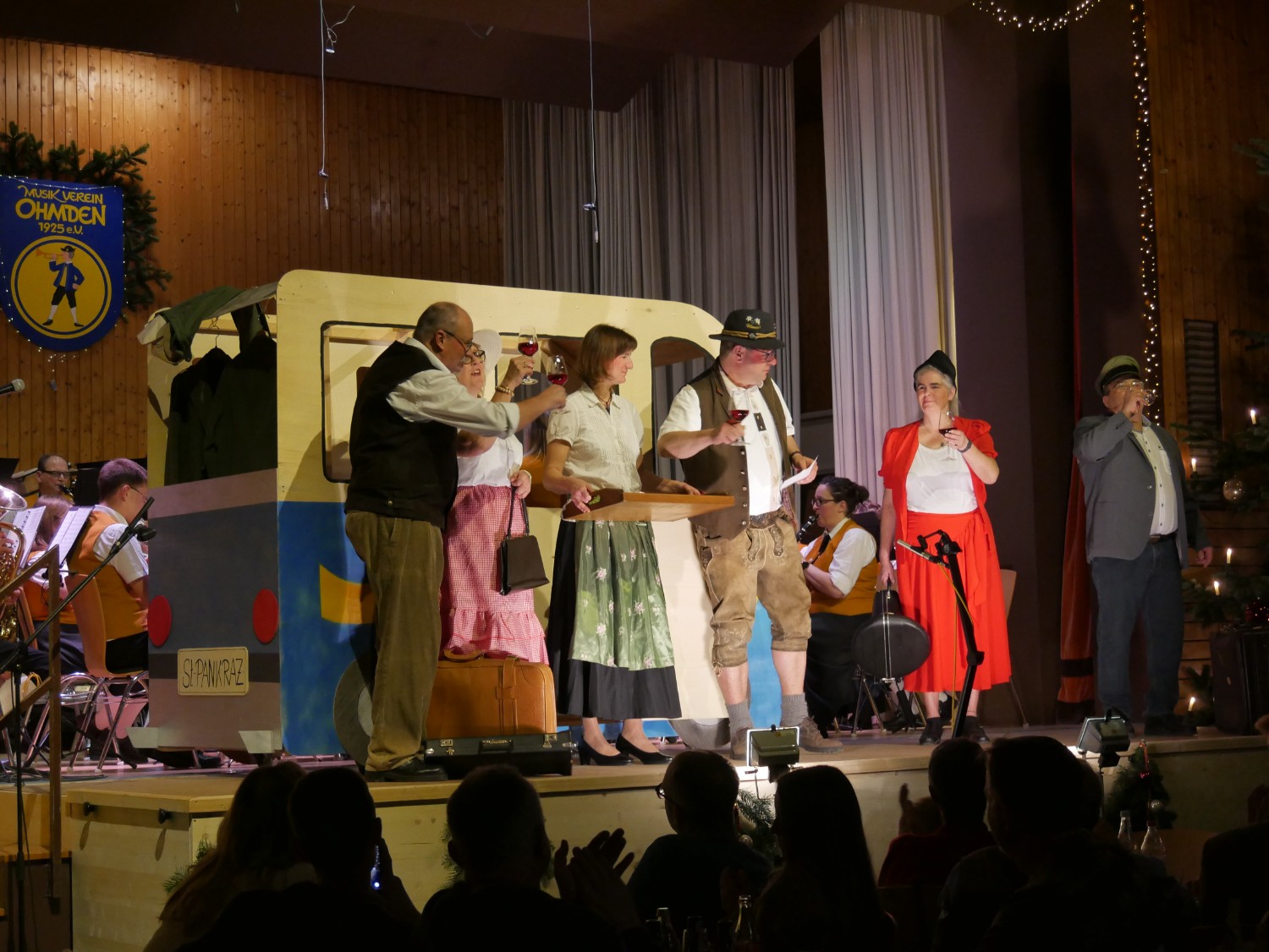 Schließlich durfte zum krönenden Abschluss ein Musikstück nicht fehlen – der „Böhmische Traum“, oder wie er an diesem Abend genannt wurde, der „Ohmdener Traum“. Dafür nahmen alle Akteure nochmals gemeinsam auf der Bühne Platz. Traditionell wurde der Abend stimmungsvoll mit Weihnachtsliedern beendet.