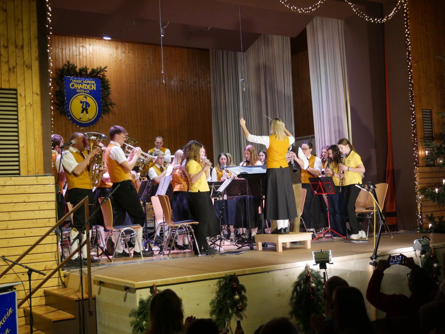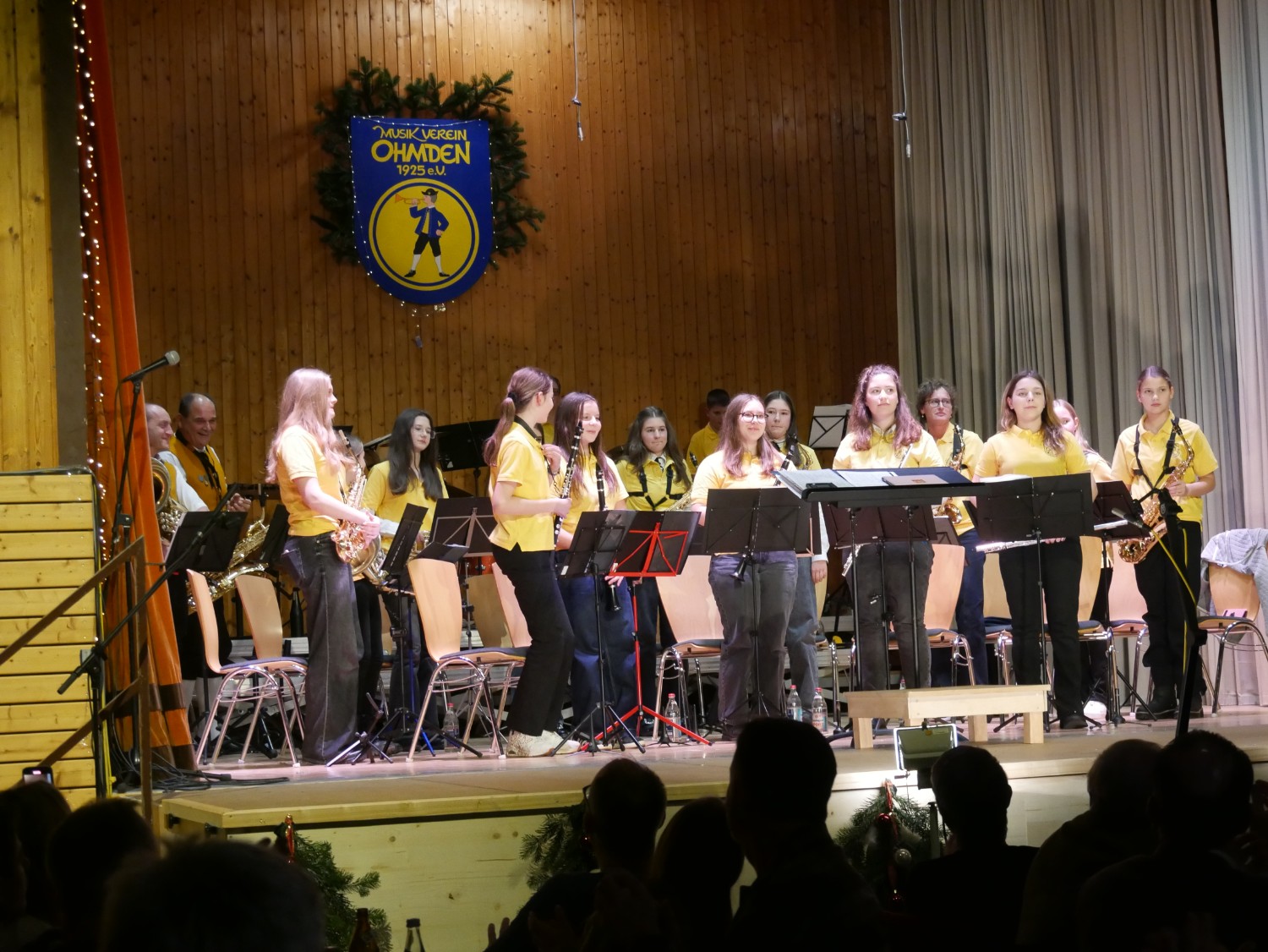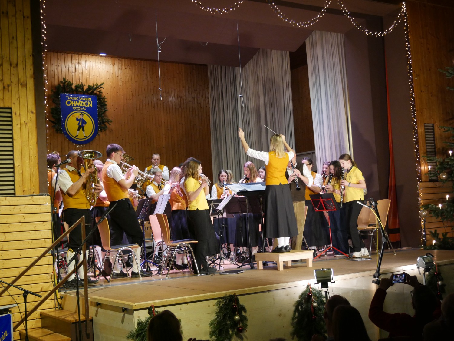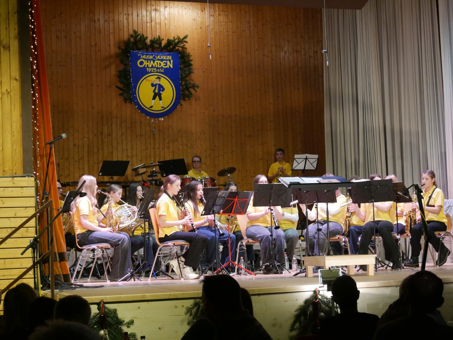 Am vergangenen Samstag, den 13. Dezember 2025 fand die traditionelle Winter- und Weihnachtsfeier des Musikverein Ohmden statt. Zum Ausklang des Jubiläumsjahrs stand die Gestaltung des Abends unter dem Motto „Wunschkonzert – Das Beste aus 100 Jahren Musikverein Ohmden!“. Hierbei nahmen Jugendkapelle, Stammkapelle und Theatergruppe gemeinsam auf der Bühne Platz und ließen die Vereinsgeschichte sowohl musikalisch als auch szenisch Revue passieren.