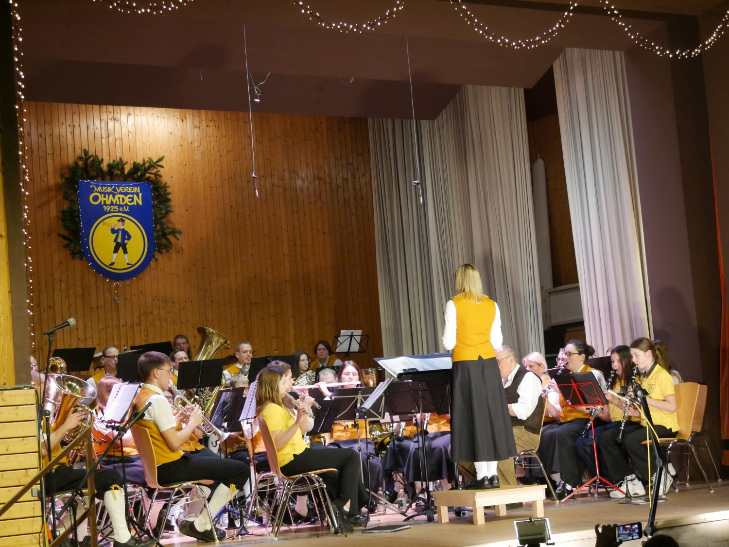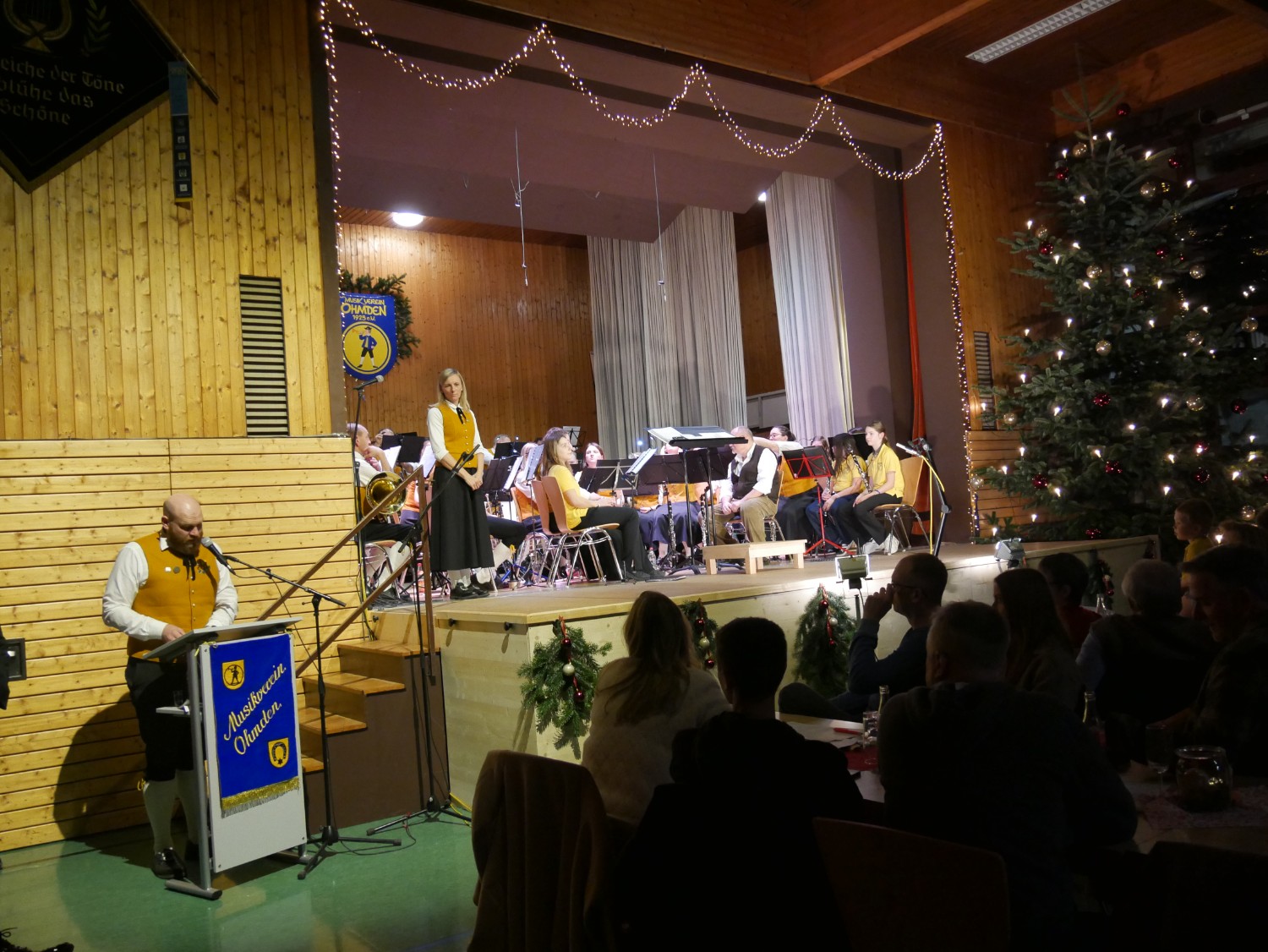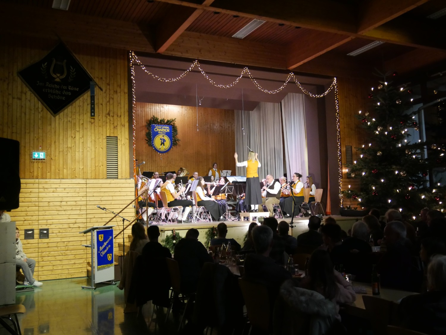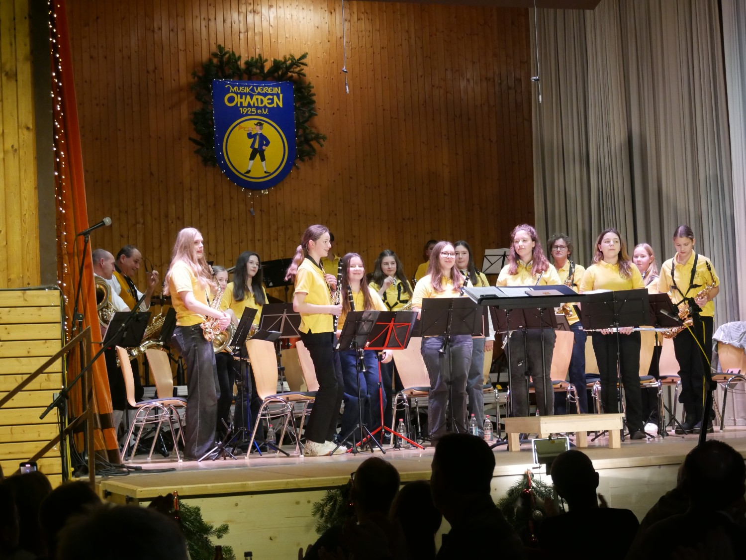 Am vergangenen Samstag, den 13. Dezember 2025 fand die traditionelle Winter- und Weihnachtsfeier des Musikverein Ohmden statt. Zum Ausklang des Jubiläumsjahrs stand die Gestaltung des Abends unter dem Motto „Wunschkonzert – Das Beste aus 100 Jahren Musikverein Ohmden!“. Hierbei nahmen Jugendkapelle, Stammkapelle und Theatergruppe gemeinsam auf der Bühne Platz und ließen die Vereinsgeschichte sowohl musikalisch als auch szenisch Revue passieren.
