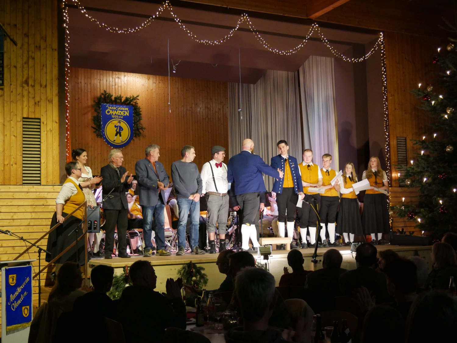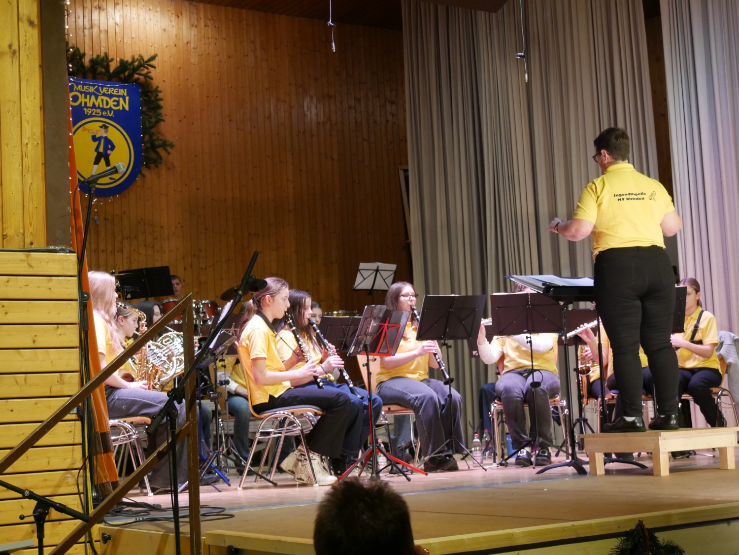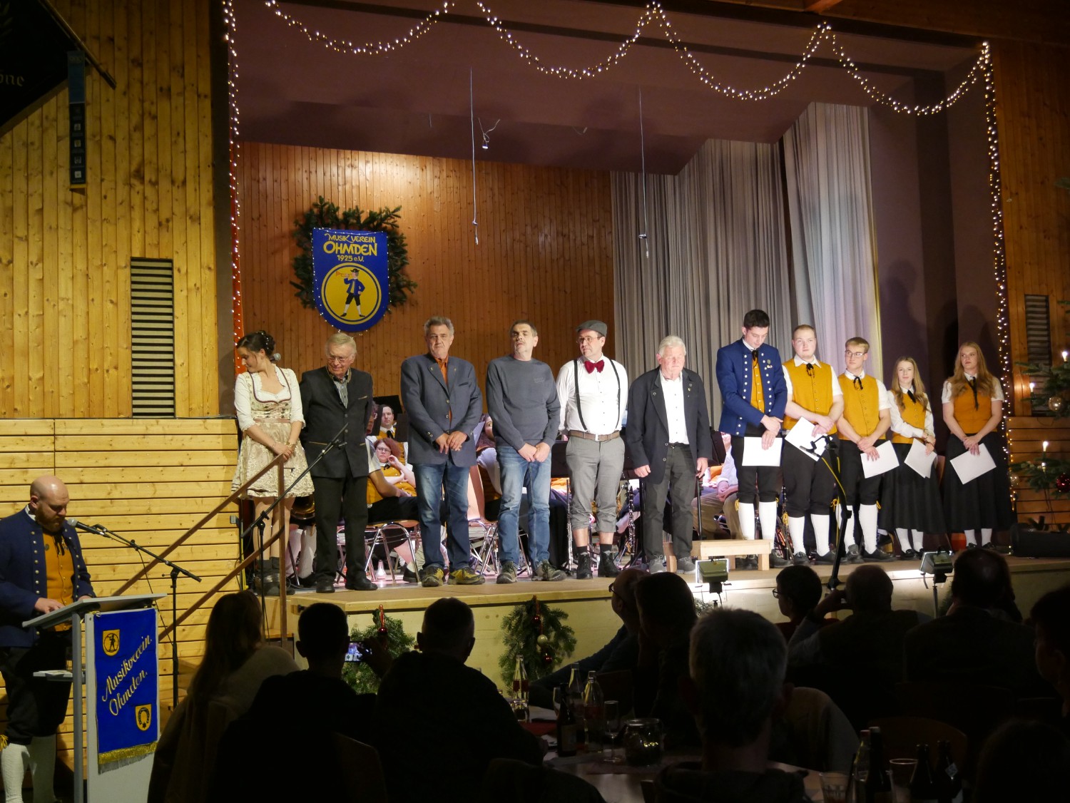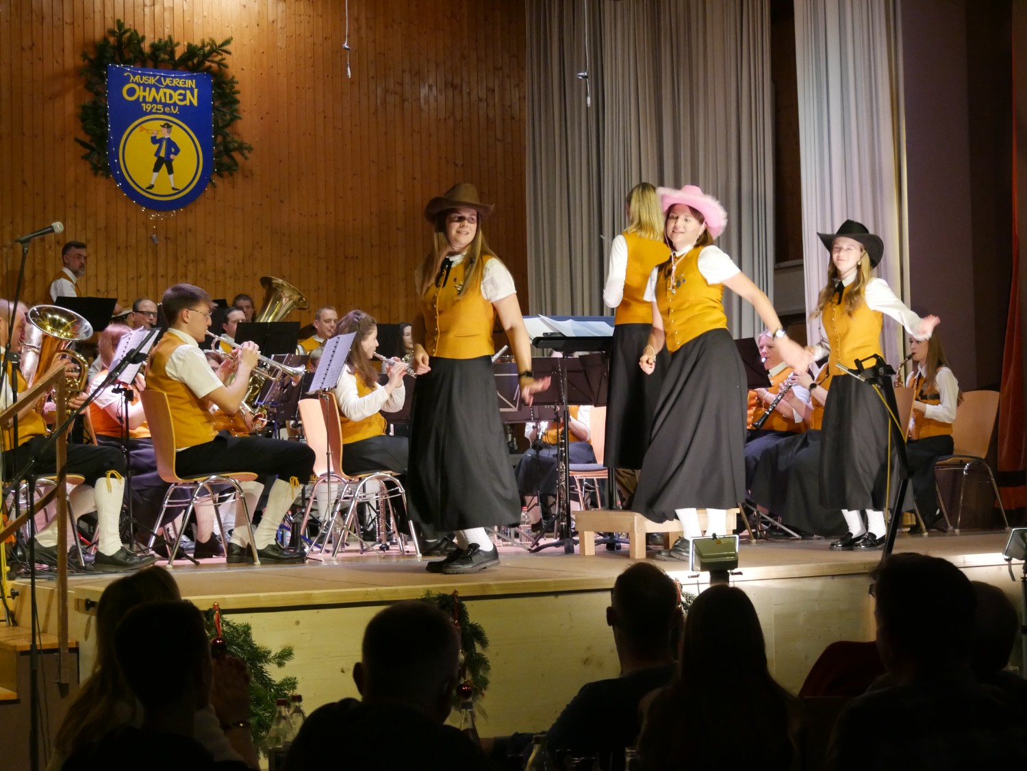 Am vergangenen Samstag, den 13. Dezember 2025 fand die traditionelle Winter- und Weihnachtsfeier des Musikverein Ohmden statt. Zum Ausklang des Jubiläumsjahrs stand die Gestaltung des Abends unter dem Motto „Wunschkonzert – Das Beste aus 100 Jahren Musikverein Ohmden!“. Hierbei nahmen Jugendkapelle, Stammkapelle und Theatergruppe gemeinsam auf der Bühne Platz und ließen die Vereinsgeschichte sowohl musikalisch als auch szenisch Revue passieren.