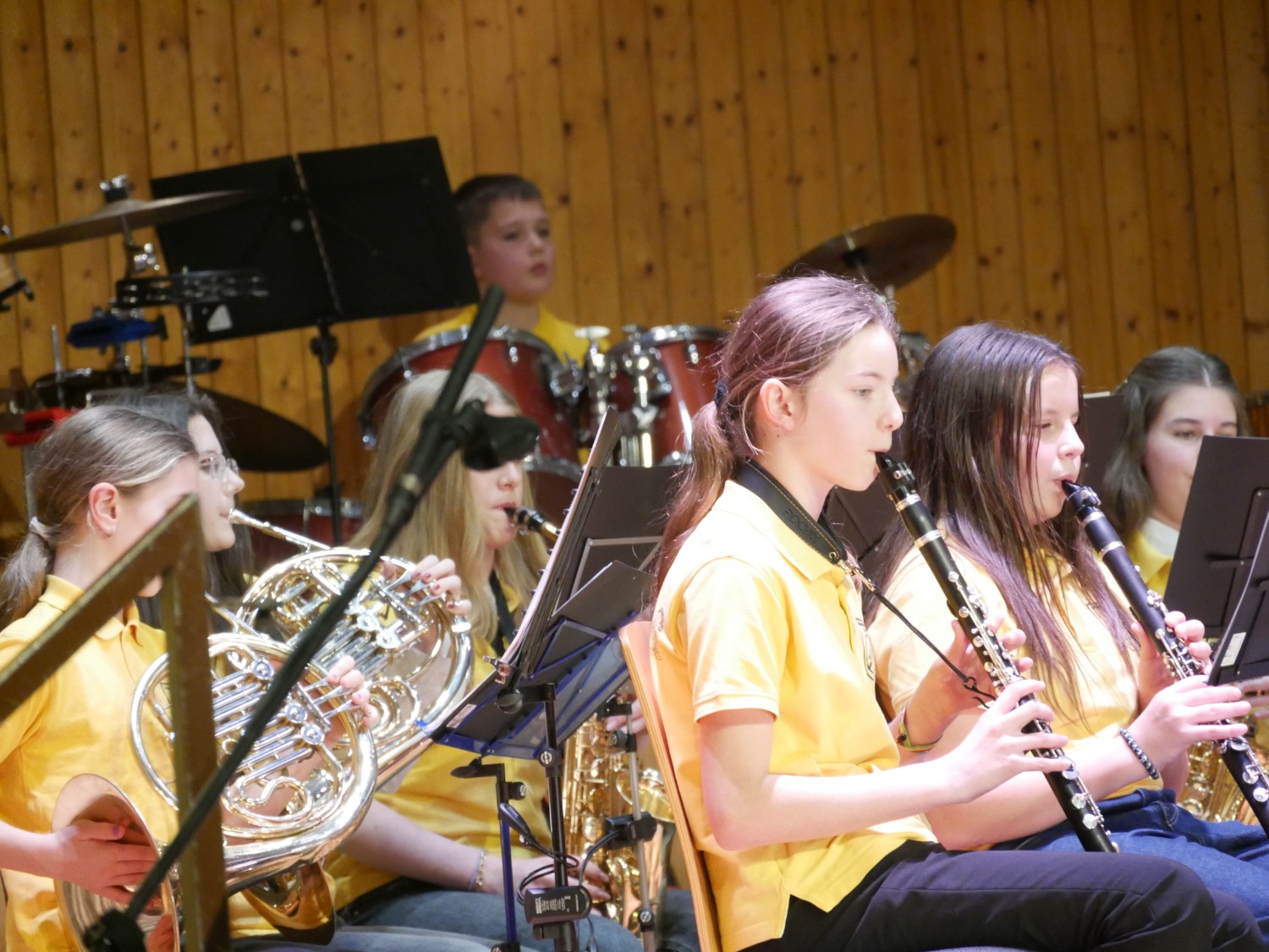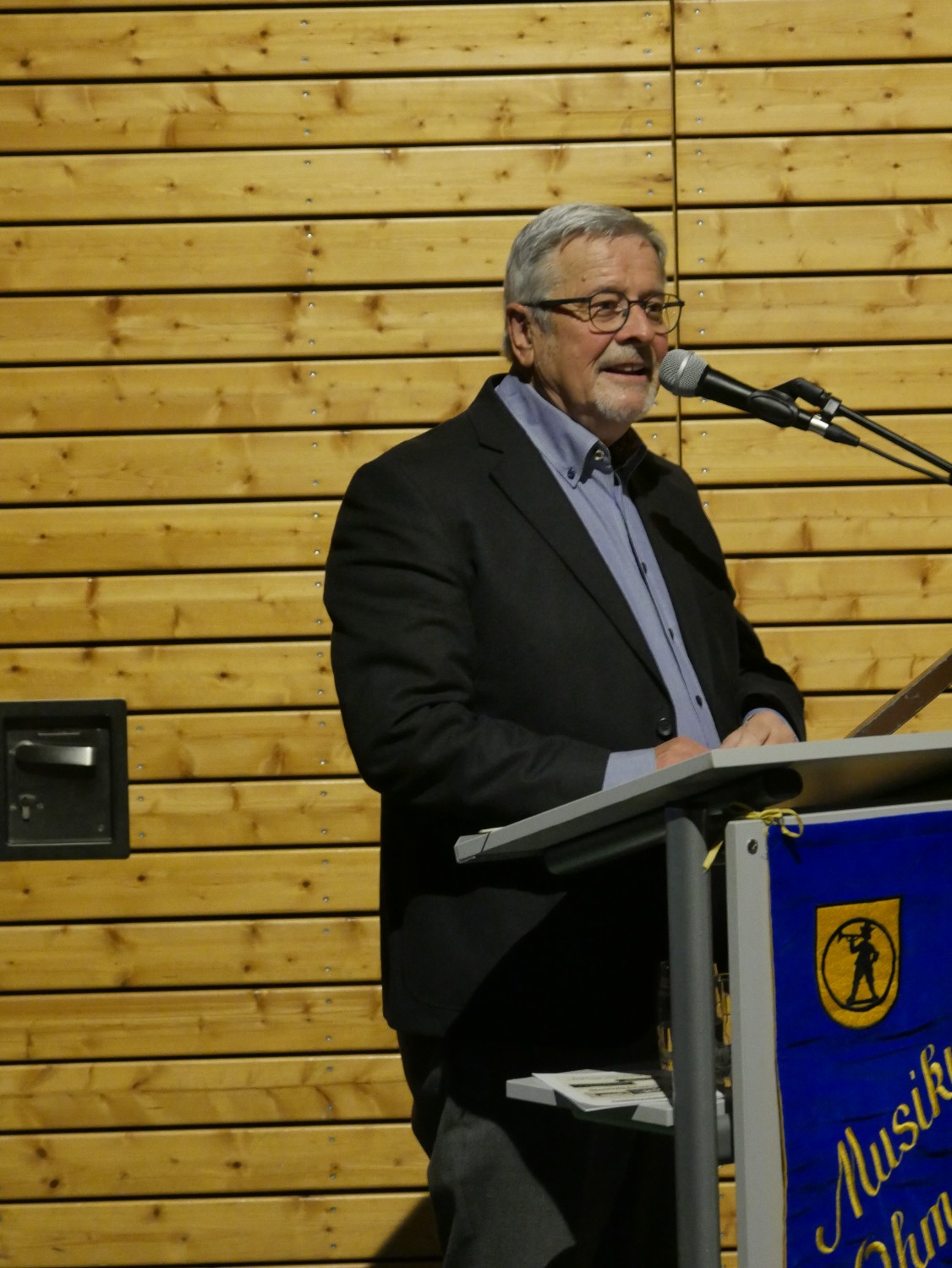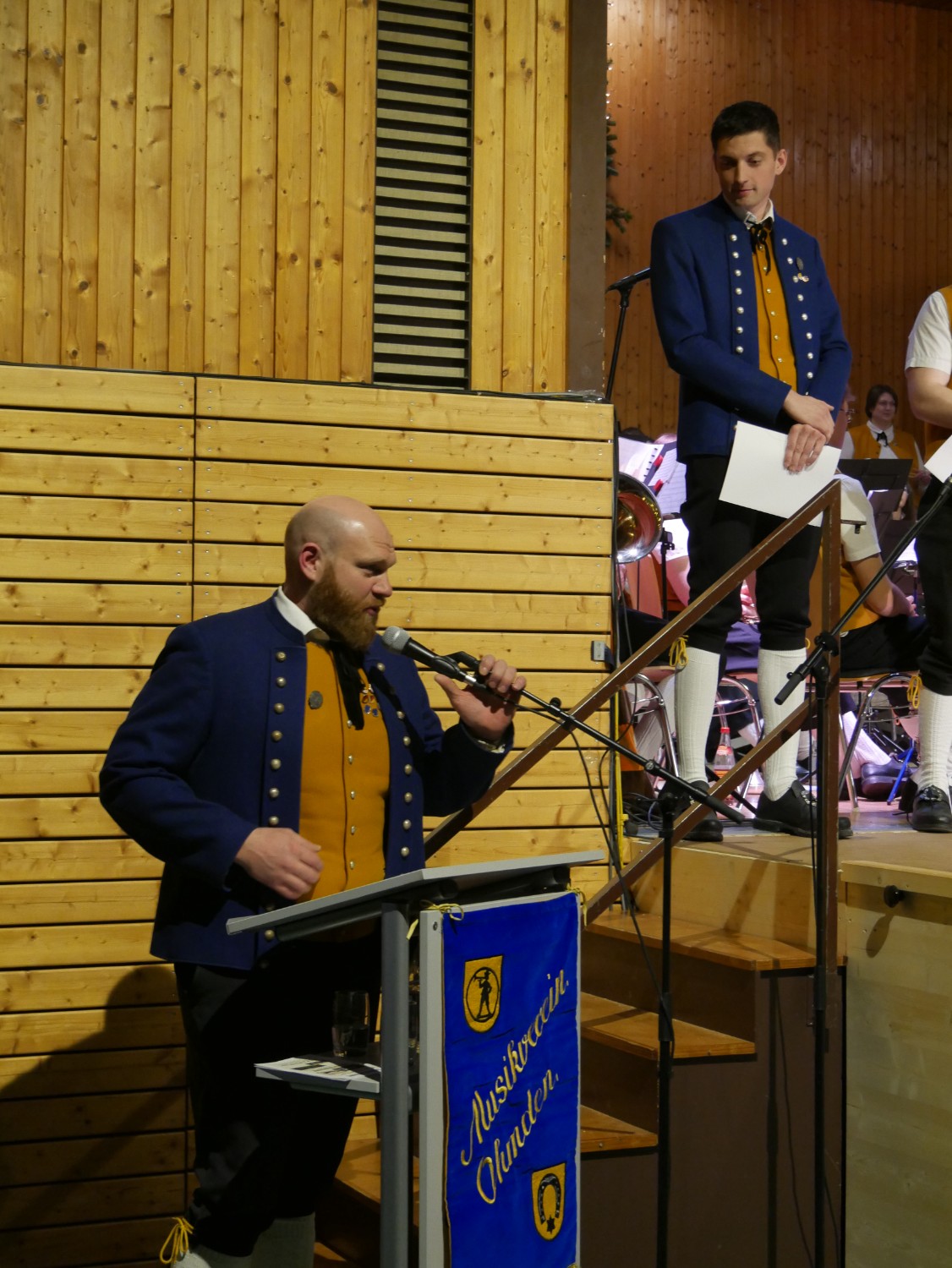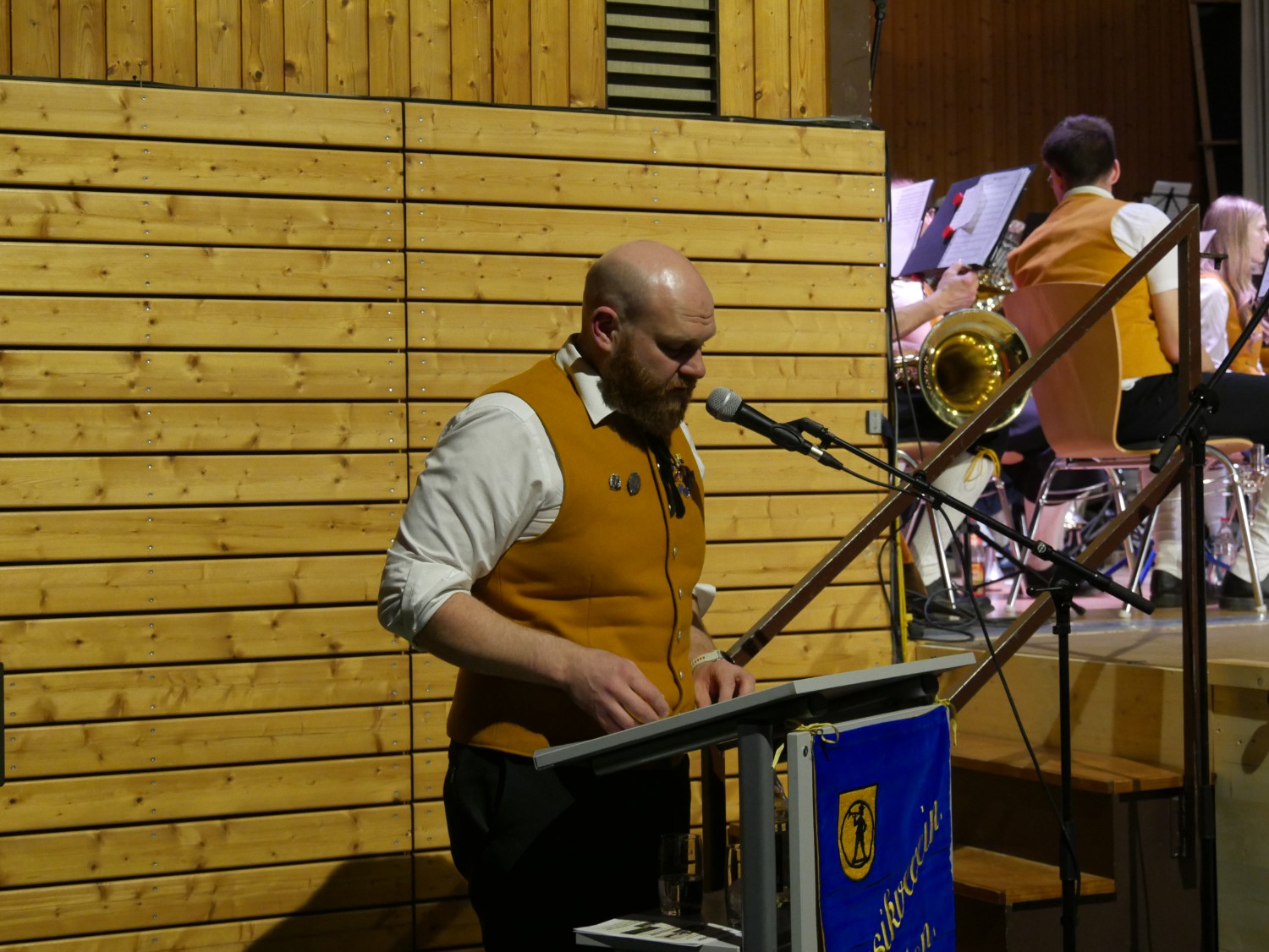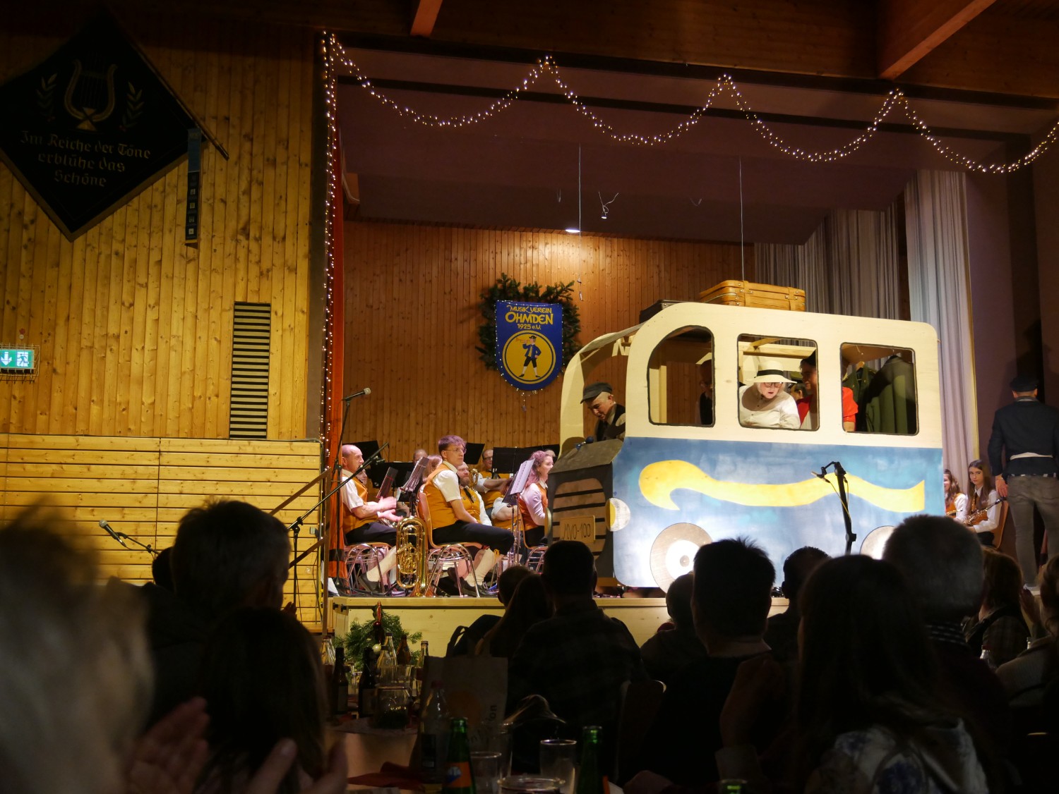 Nachdem alle Gäste einen Platz gefunden hatten, eröffnete der 1. Vorsitzende René Bezler nahezu pünktlich um 19 Uhr den Abend. Er begrüßte die Gäste und stellte dem Publikum das Motto des Abends vor. Musikalisch eröffnet wurde der Abend durch die Stammkapelle mit dem Stück „Also sprach Zarathustra“. Anschließend übernahmen Stammkapelle, Jugendkapelle und Theatergruppe im Wechsel das Programm. Von der Theatergruppe wurden prägnante Ereignisse der Vereinsgeschichte, wie etwa die Gründungssitzung, der Häuslesbau oder die erste Fahrt nach St. Pankraz dargestellt. Die Stammkapelle spielte, die in einer vorherigen Abstimmung vom Publikum meist gewählten Musikstücke. Darunter waren Stücke, wie „Oregon“ von Jacob de Haan, „Fluch der Karibik“ oder „Selections from Stralight Express“ zu hören. Auch die Jugendkapelle überzeugte mit einem abwechslungsreichen musikalischen Programm mit den Musikstücken „Meet the Beatles“, „Bohemian Rhapsody“, „I Will Follow Him“ und „Der lustige Winzer“.