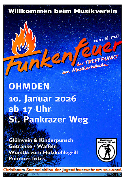 Seit Januar 2010 veranstaltet der Musikverein das Ohmdener Funkenfeuer am Musikerhäusle. Bei einem dampfenden Glühwein und einer frischen Waffel lässt sich der Winter von seiner schönsten Seite genießen.